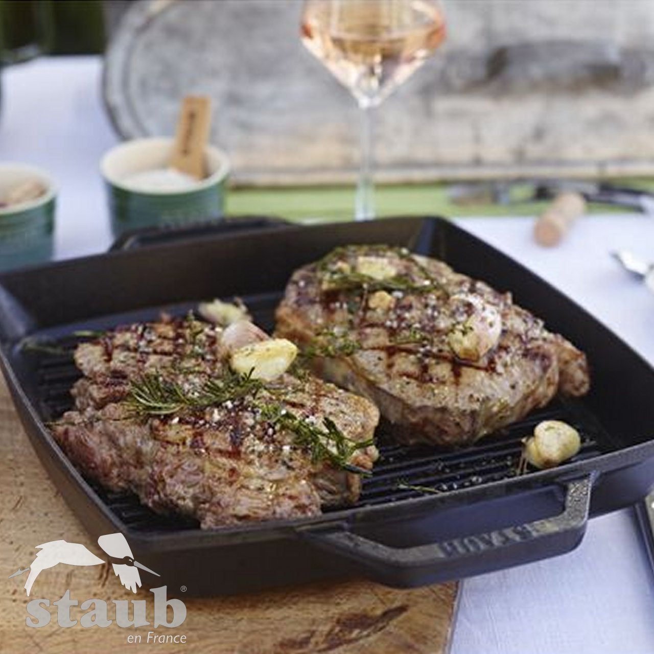 Bistecchiera Quadrata in Ghisa Nera Staub – Grill Professionale, Effetto Barbecue, Adatta a Induzione