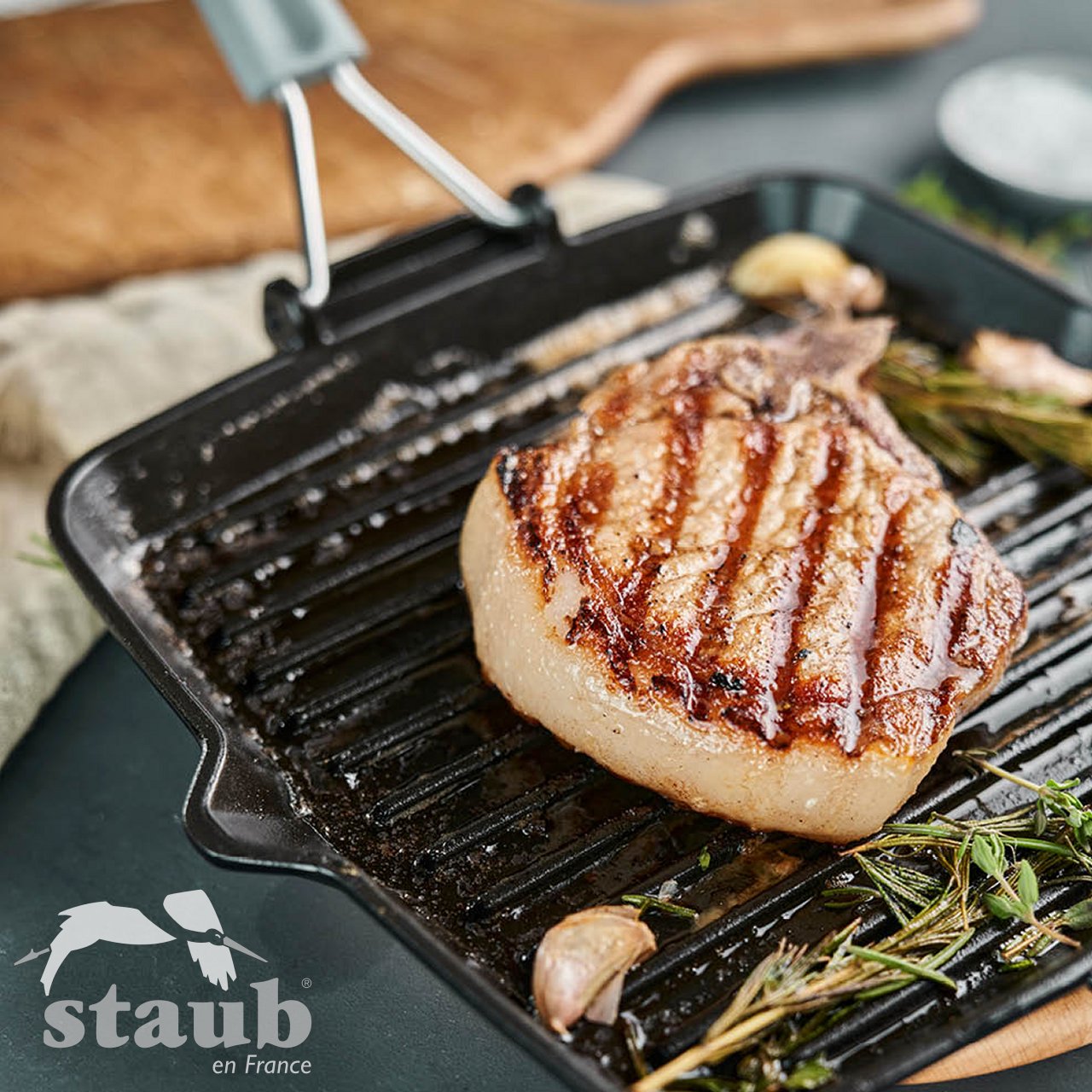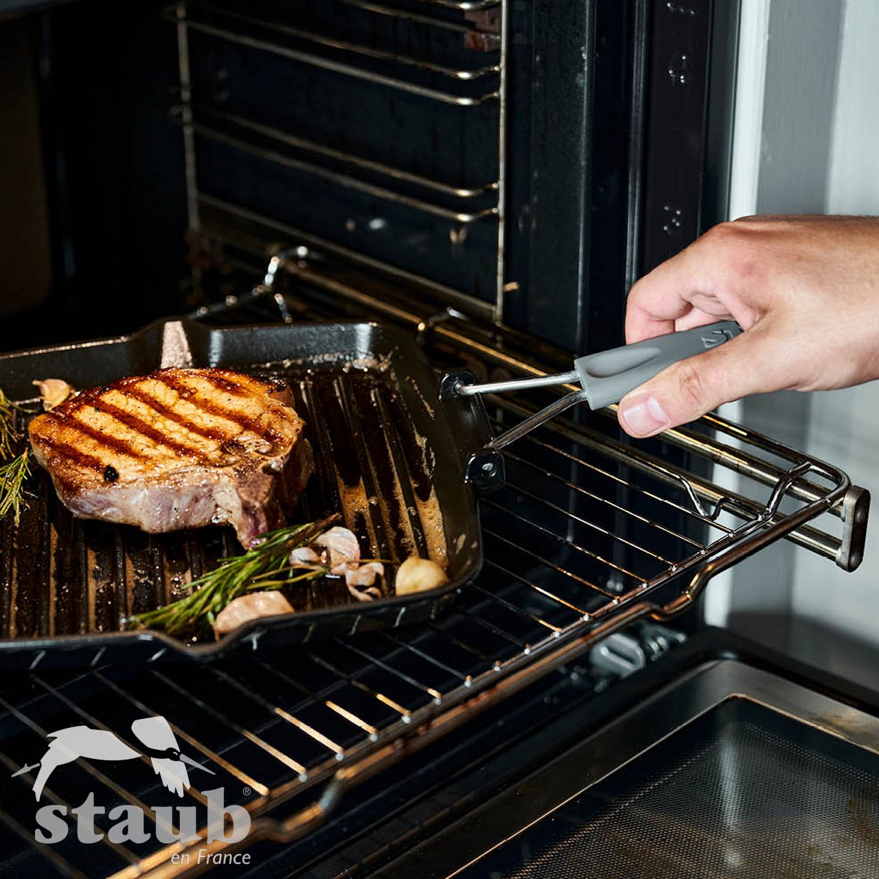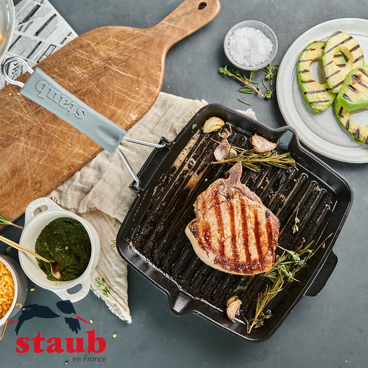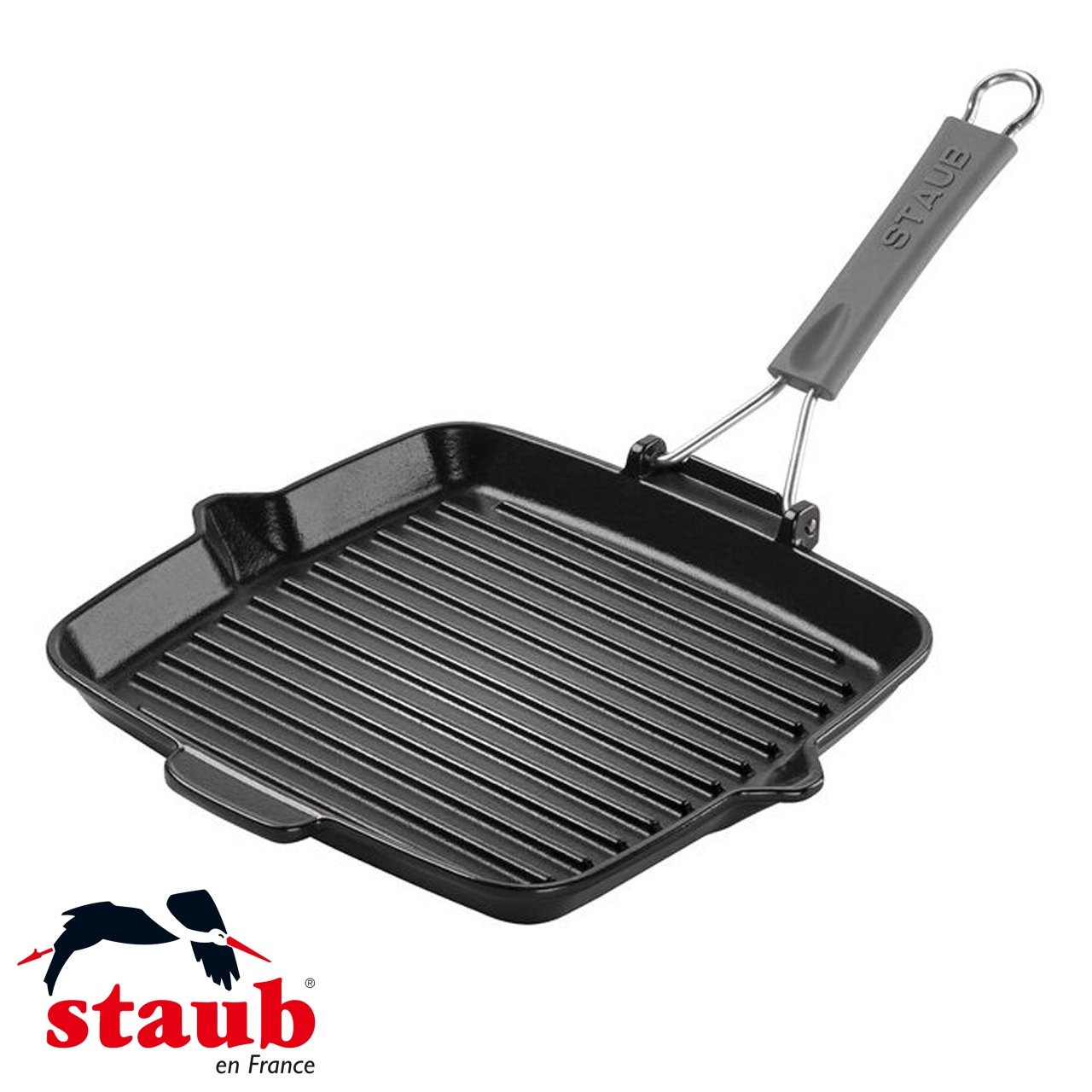 Bistecchiera Staub in Ghisa Quadrata 24×24 cm: Grill Professionale con Manico Pieghevole