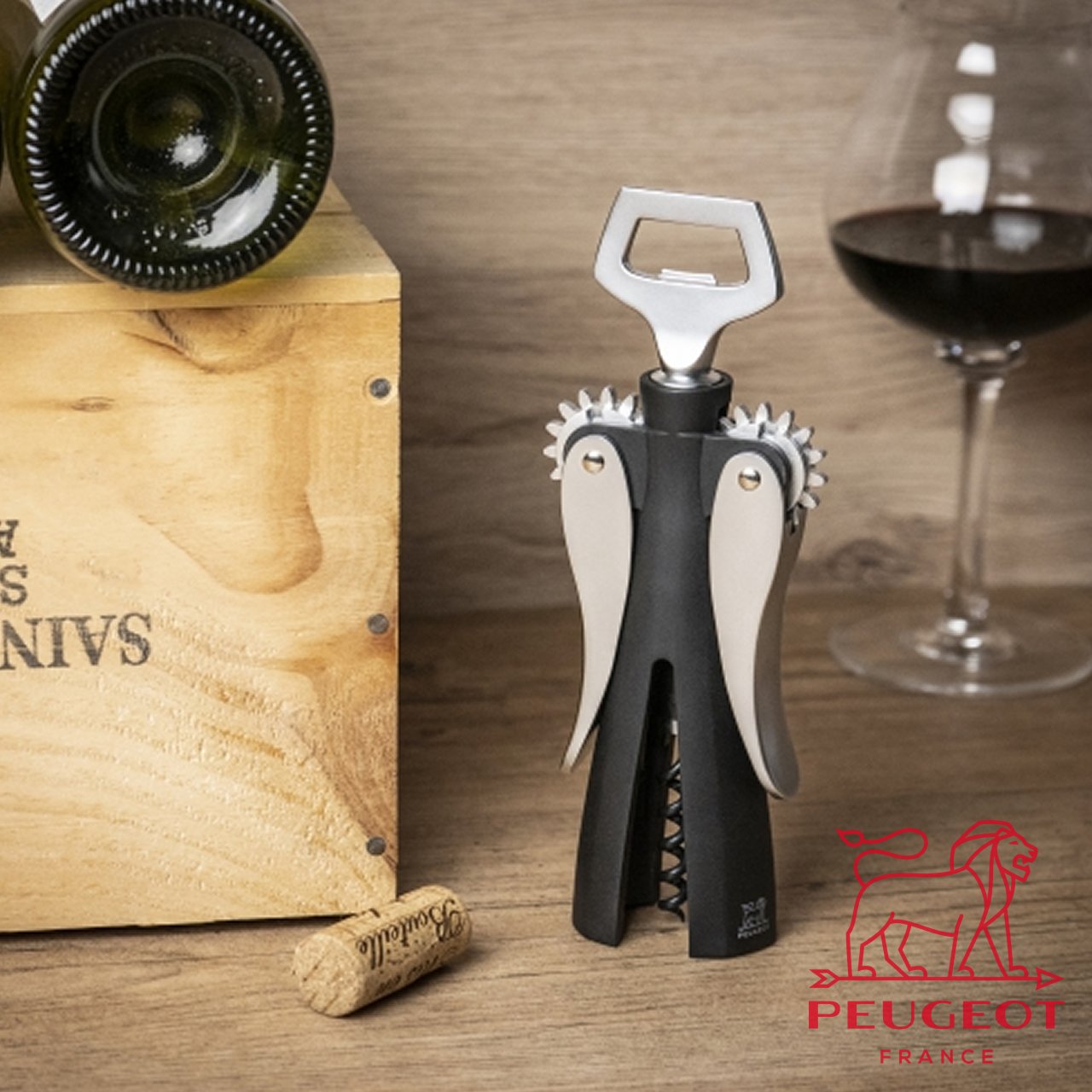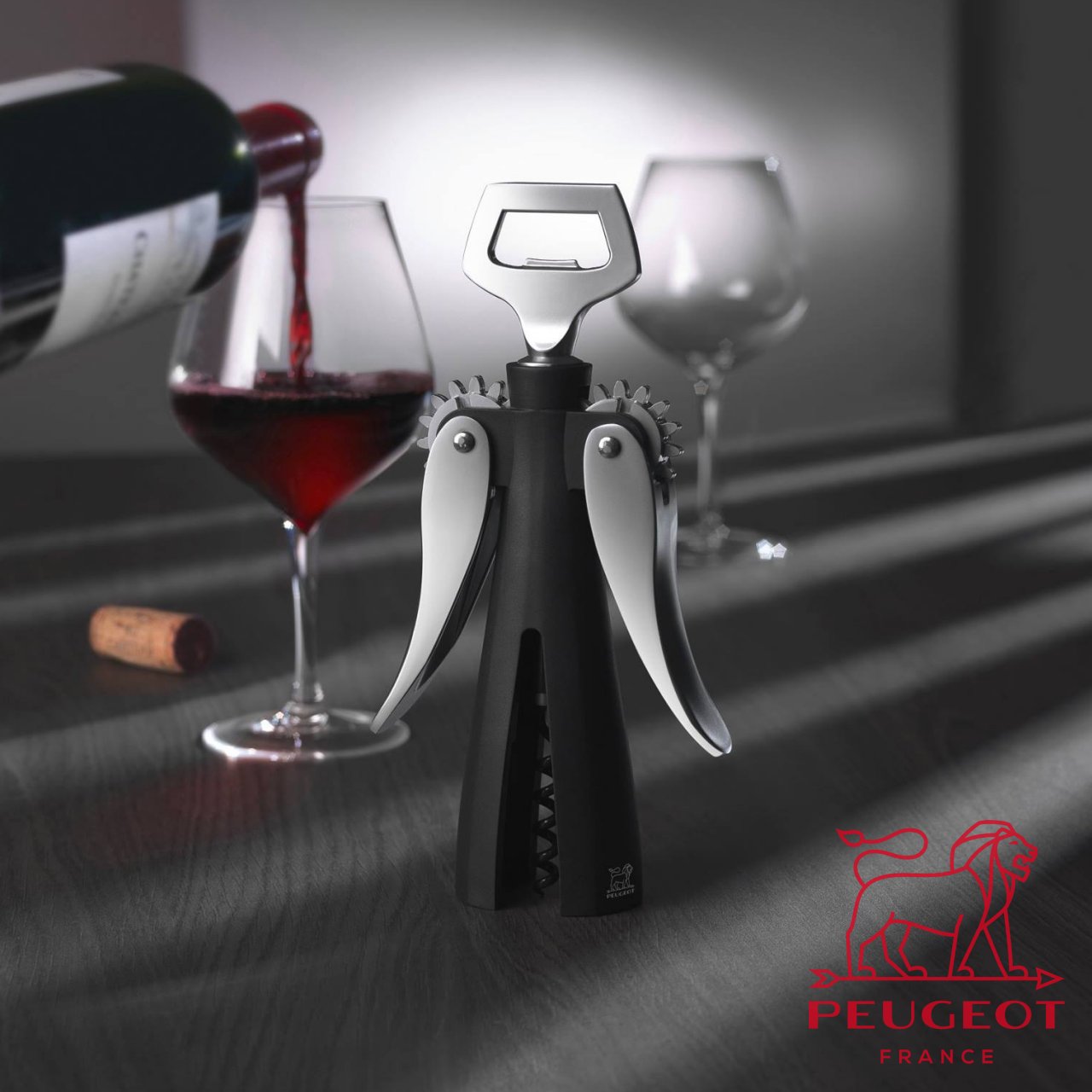 Peugeot reinventa il gesto dello stappare grazie a questo cavatappi ergonomico ed efficiente che rimuove qualsiasi tappo in un solo movimento.