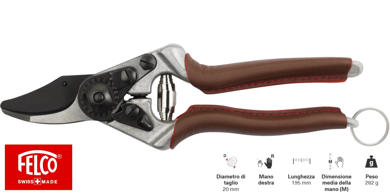 Il design all’avanguardia, il rivestimento tecnologico F-Tech sulla lama, il fermo a mezza apertura e le impugnature in morbida pelle offrono un comfort e un’esperienza d’uso senza pari. Con un’attenzione particolare alle prestazioni di taglio, all’ergonomia, alla durabilità e alla sostenibilità ambientale, la FELCO ELITE definisce un nuovo standard nel settore.