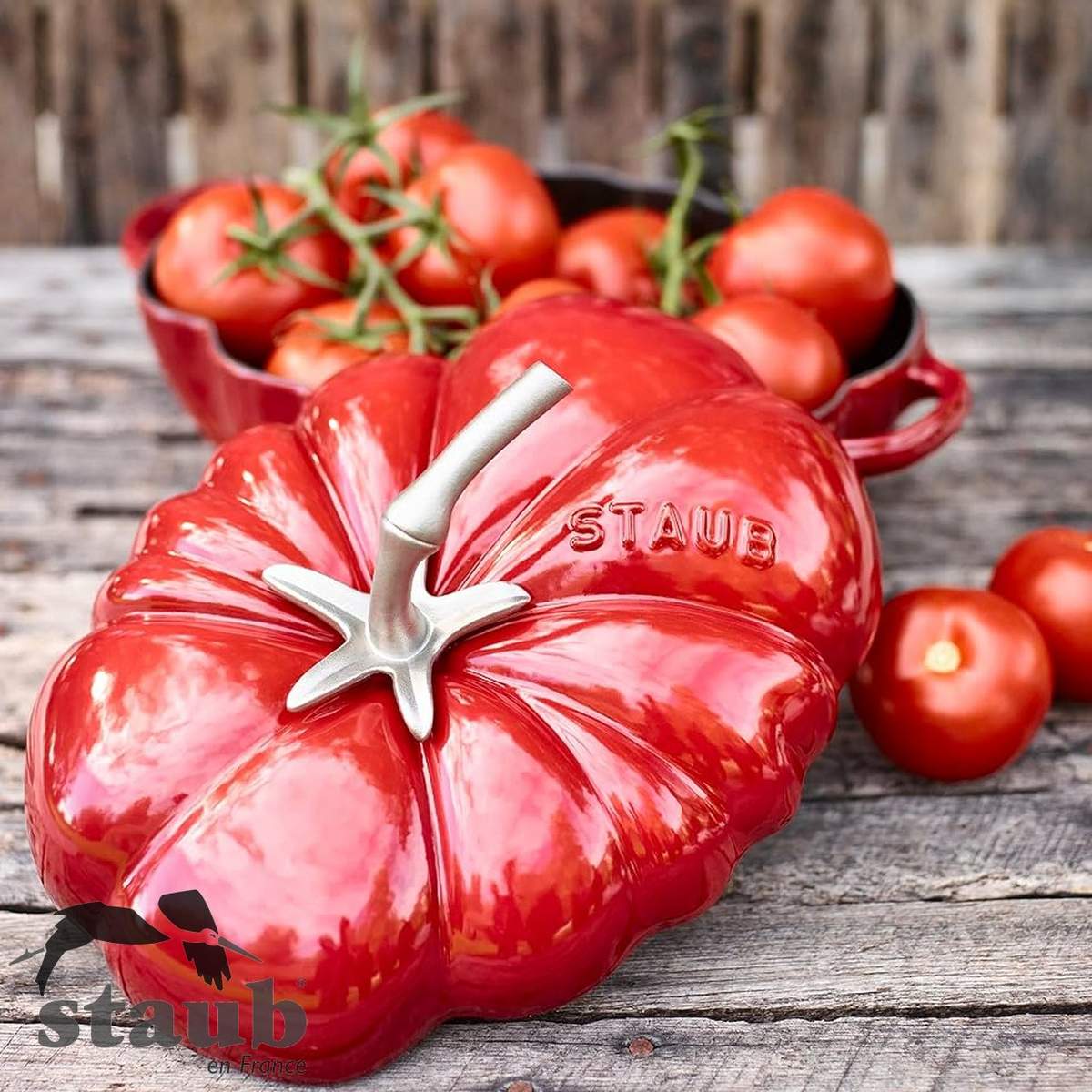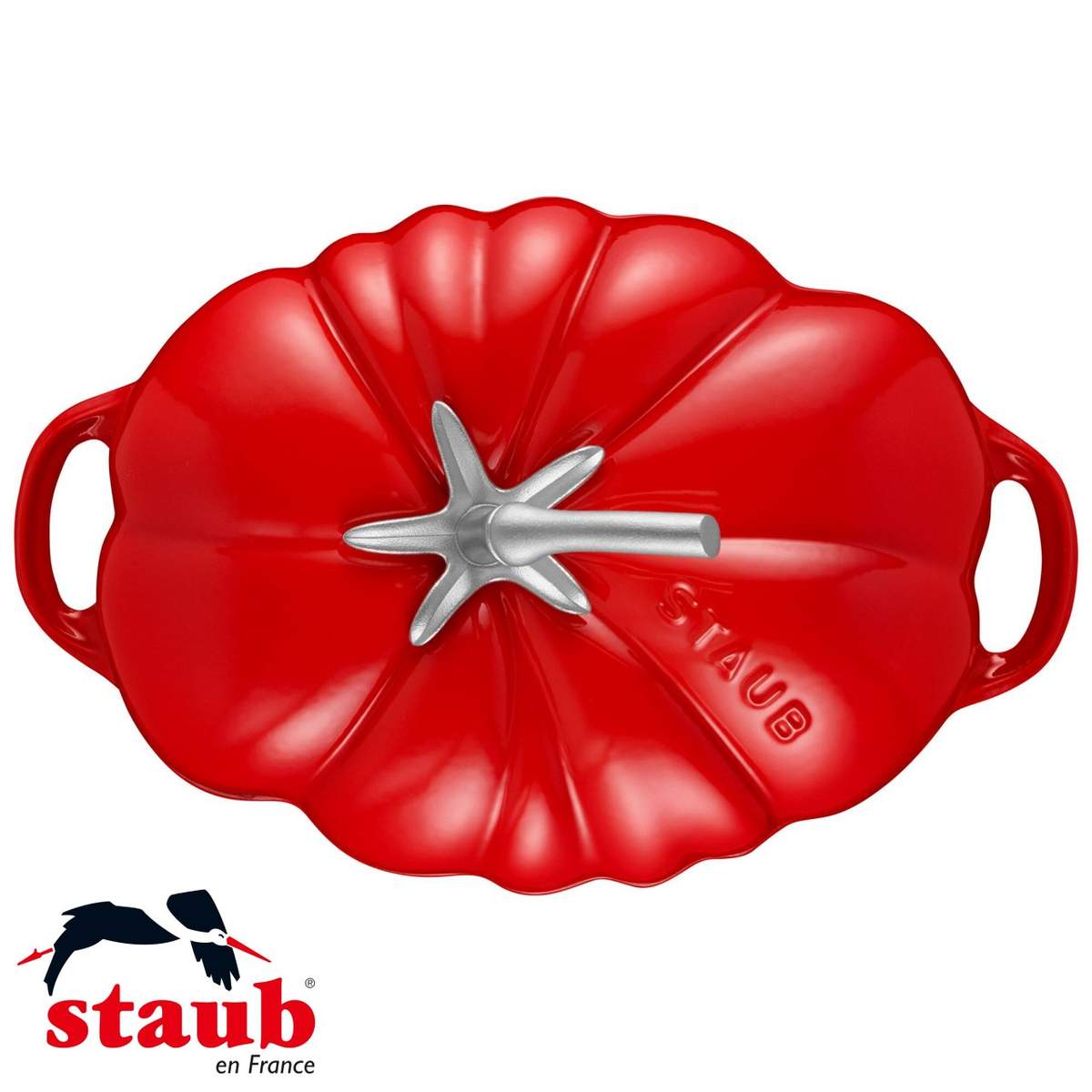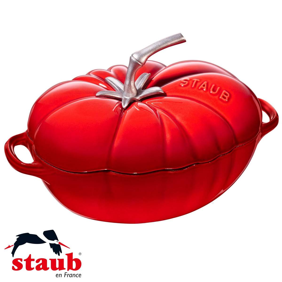 La Cocotte pomodoro Staub 25 cm ciliegia è una pentola in ghisa smaltata che combina un design artistico a forma di pomodoro con l’eccellenza della cucina francese e l’efficienza delle cotture lente.