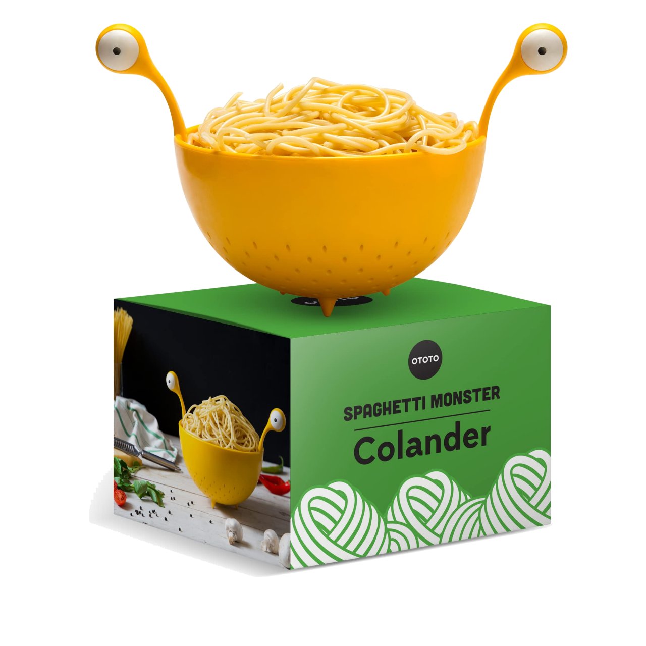 Questo scolapasta divertente e colorato diventerà indispensabile nella tua cucina, perfetto per scolare la pasta o sciacquare le verdure con un tocco di magia.