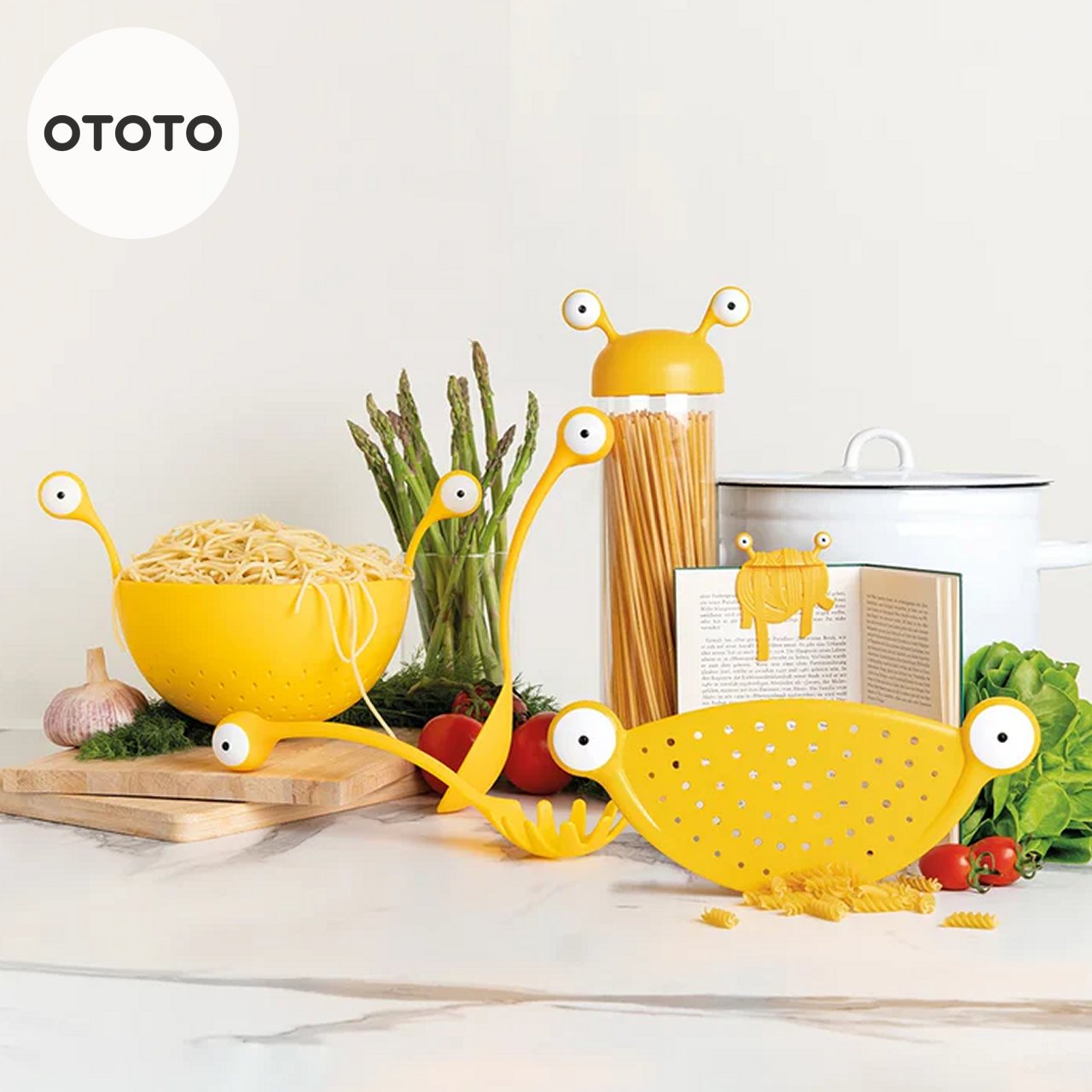 Specializzato nella produzione di utensili da cucina e piccoli elettrodomestici, Ototo offre una vasta gamma di prodotti che vanno dai mestoli alle grattugie, dai colini ai tappi per bottiglie, dai dosatori agli strumenti per la preparazione di alimenti. Ciò che rende unico questo marchio è l'approccio giocoso e creativo che riesce a dare vita a utensili dal design insolito, spesso ispirato a forme animali, personaggi fantastici o elementi della natura. Un mestolo può diventare un simpatico dinosauro, una grattugia assumere la forma di un porcospino, e un semplice scolapasta trasformarsi in una creatura mitologica.