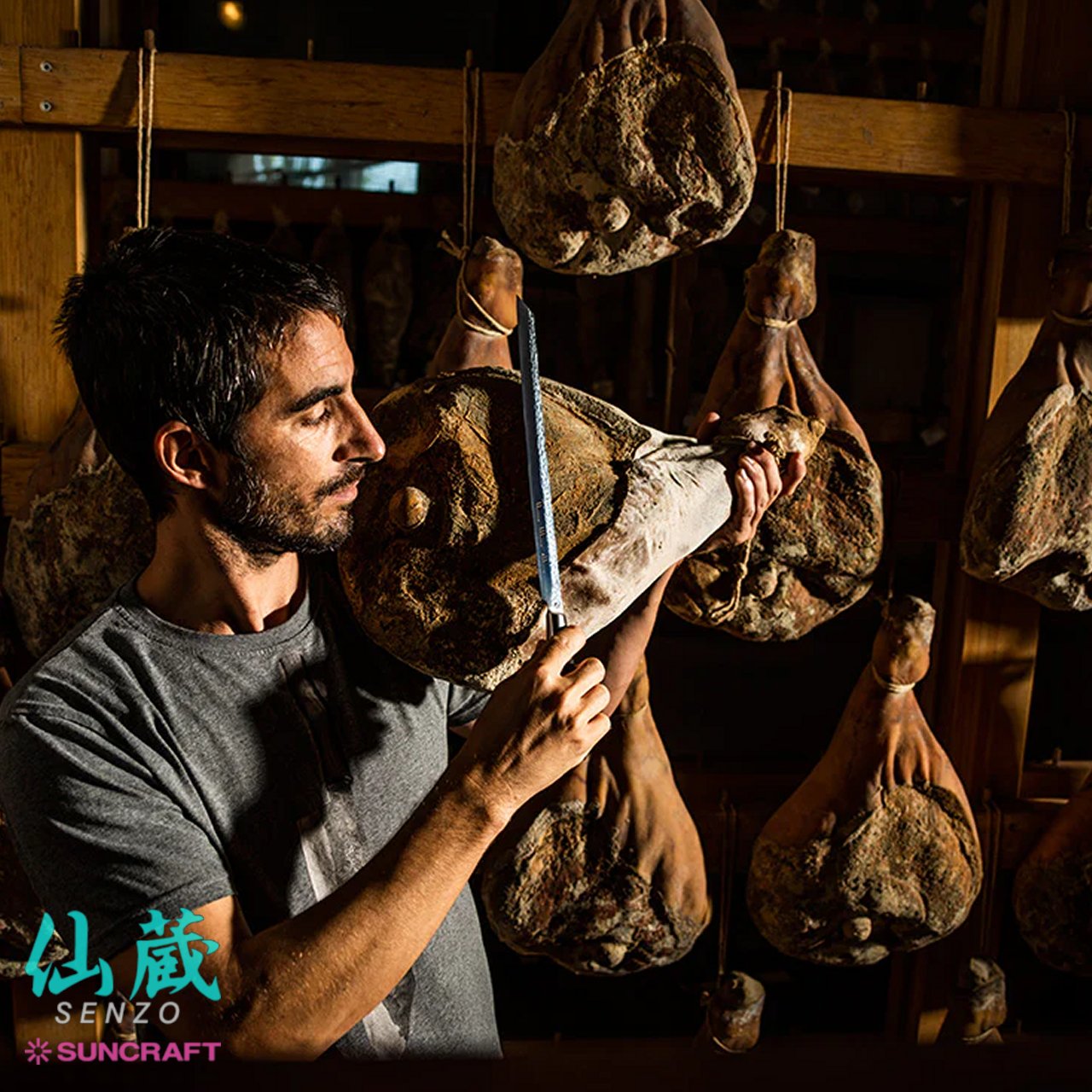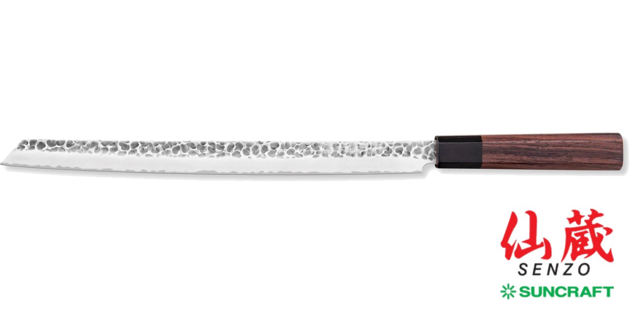 Questo particolare coltello dalla lama lunga ben 30 cm che termina con una punta sottile e appuntita, assomiglia ad una vera e propria katana giapponese, infatti nasce dall’incontro della tradizione giapponese con la necessità del mondo occidentale di tagliare il prosciutto a mano.