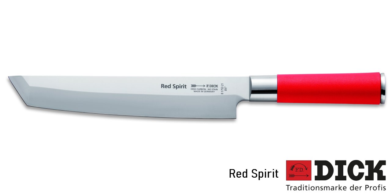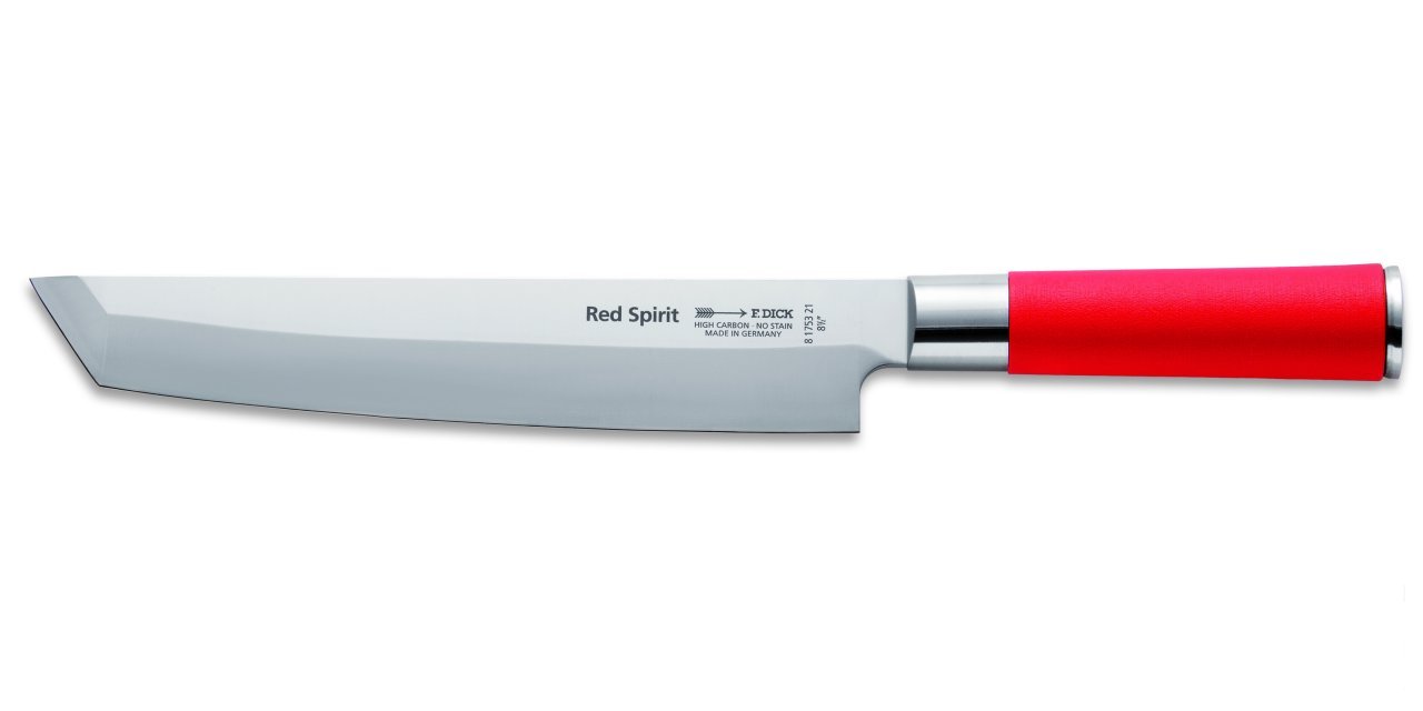 Red spirit: una linea di coltelli da cucina che combina il meglio dell'artigianato asiatico con le qualità dei materiali tedeschi. Il manico rotondo, infatti, rappresenta al meglio lo stile asiatico e permetterà al coltello di adattarsi perfettamente alla mano, soddisfano tutti i requisiti di ergonomia richiesti da ogni professionista. I materiali antiscivolo che compongono l'impugnatura permettono di guidare il coltello in modo confortevole e rendono questa linea perfetta per l'utilizzo di questi coltelli per servizi molto lunghi. La qualità di questi coltelli viene completata dall'acciaio inossidabile e della sottigliezza della lama;