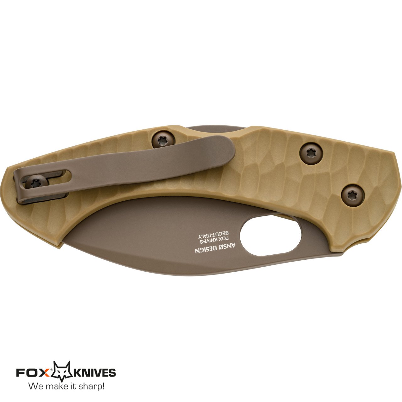 Il Fox Zero 2.0 Desert Warrior è un piccolo ed elegante coltello da tasca in acciaio Becut e manico in FRN colore Coyote.