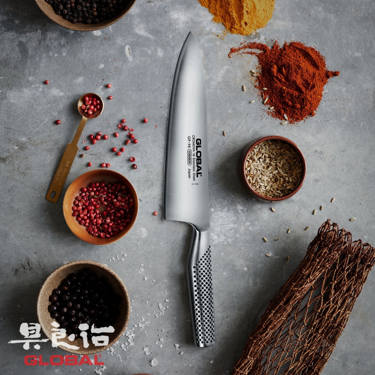 Frutto di lunghi studi e di un design accurato e minimal, il marchio Global coltelli basa il suo successo sulla tradizione dei coltelli da cucina giapponesi: una tradizione che si estende fino ad oggi attraverso il maestro e designer Komin Yamada. Si tratta di un marchio fondato nel 1985 e con sede in Giappone che rappresenta ciò che c'è di più creativo e visionario nel mondo della cucina.