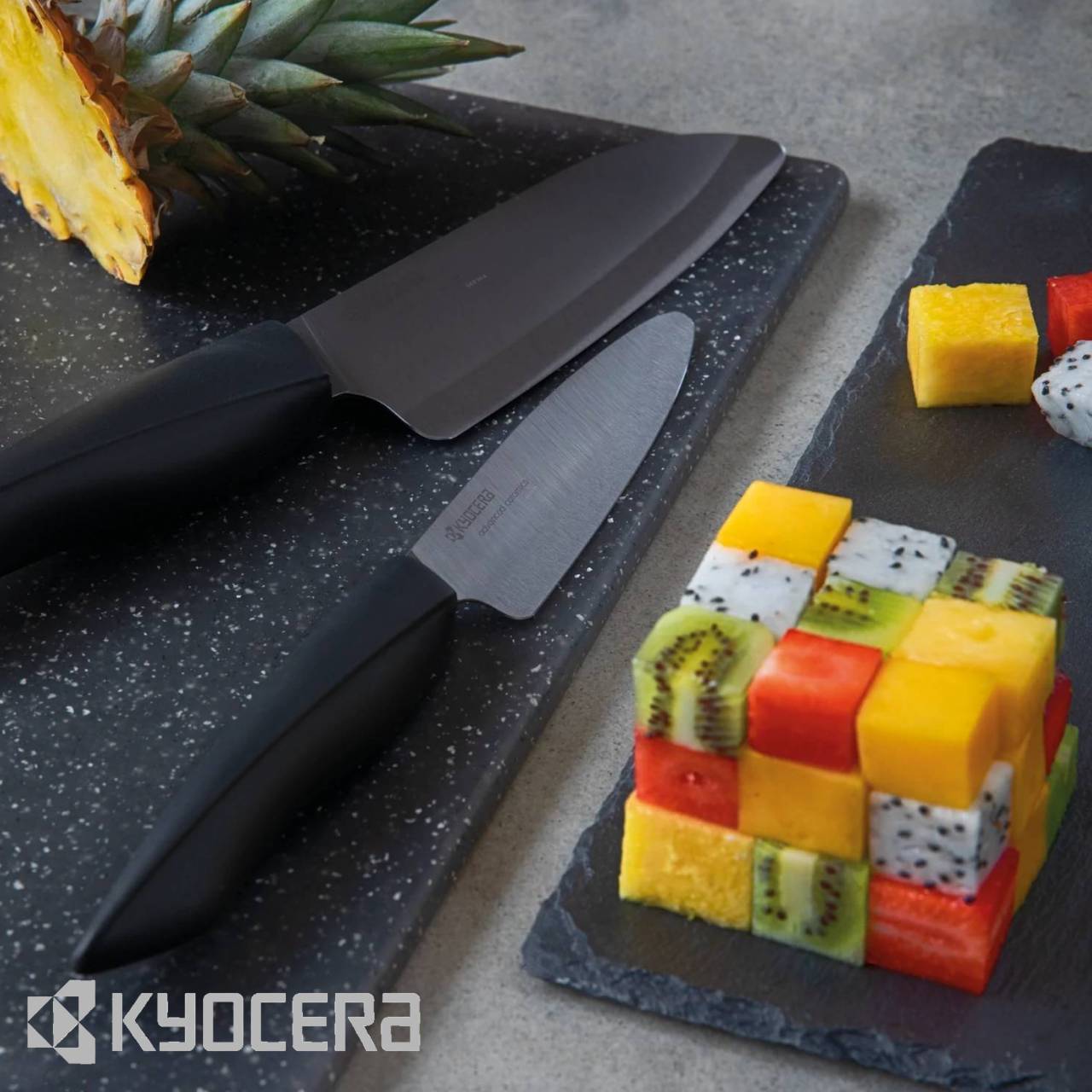 • Kyocera Shin Black: è una linea di coltelleria da cucina dalla lama in ceramica rivoluzionaria grazie ad un metodo di produzione che permette ad ogni coltello da cucina di questa gamma di mantenere l'affilatura due volte più a lungo rispetto agli altri modelli di lame in ceramica. Questi coltelli sono semplicissimi da controllare e manovrare, caratteristica assicurata dal manico ABS super ergonomico e sicuro che garantisce anche un grip perfetto;