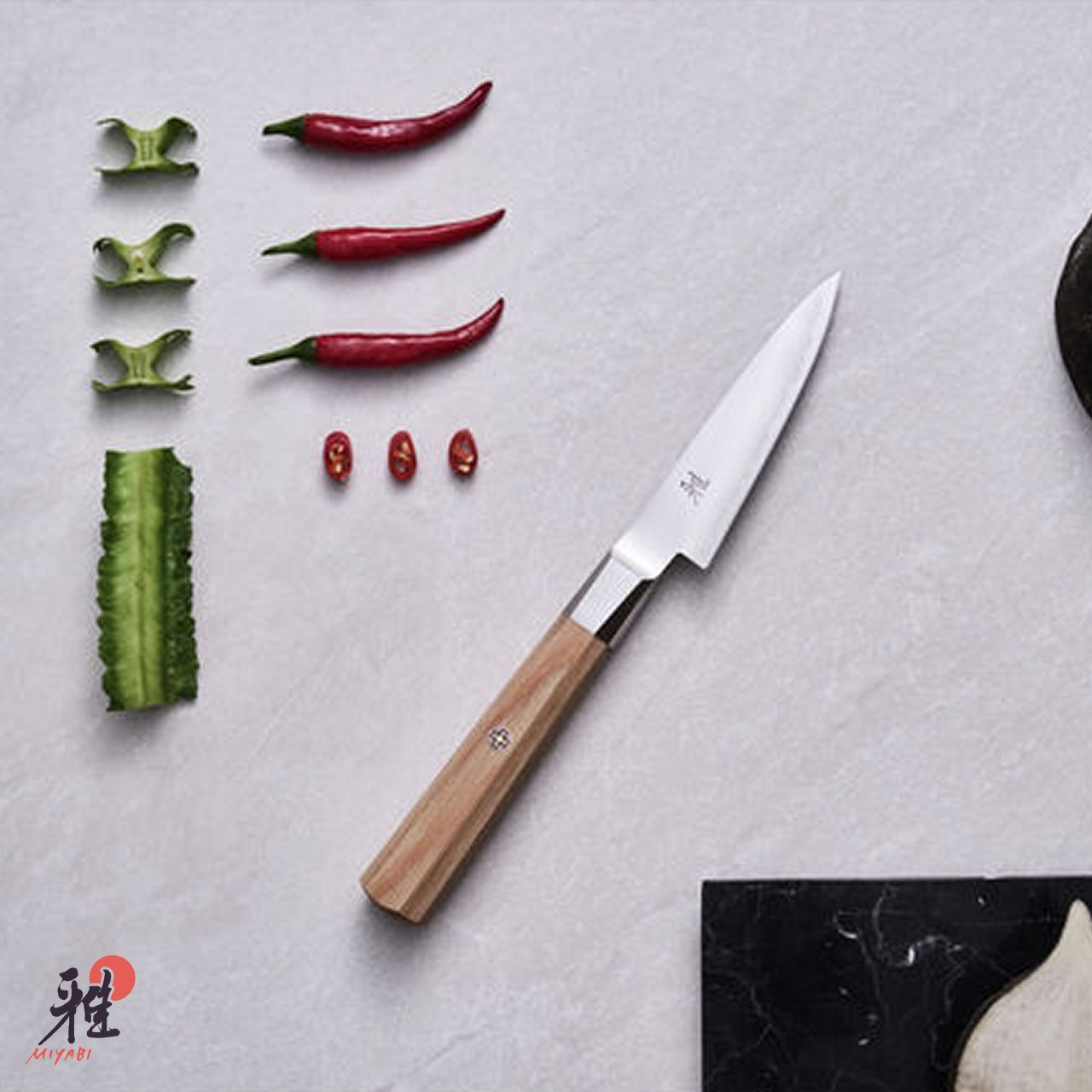 Il merito è soprattutto dell’eccellente affilatura: i coltelli Miyabi sono infatti realizzati seguendo l’antica tradizione giapponese, declinandola alle moderne tecnologie. Dal 2004, il marchio della città di Seki è stato infatti acquisito dal gruppo Zwilling, che ha deciso di applicare alle lavorazioni tradizionali della celebre città dei coltelli giapponese tutto il know how occidentale. Il risultato sono lame apprezzate dagli chef professionisti (e non solo) di tutto il globo.