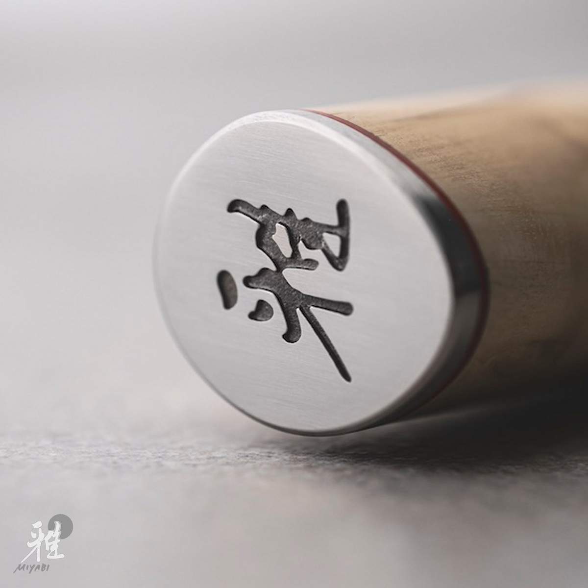 Un perno a mosaico decorativo e un logo Miyabi in rilievo sul tappo del manico completano l’estetica sofisticata di questo capolavoro d’arte giapponese.