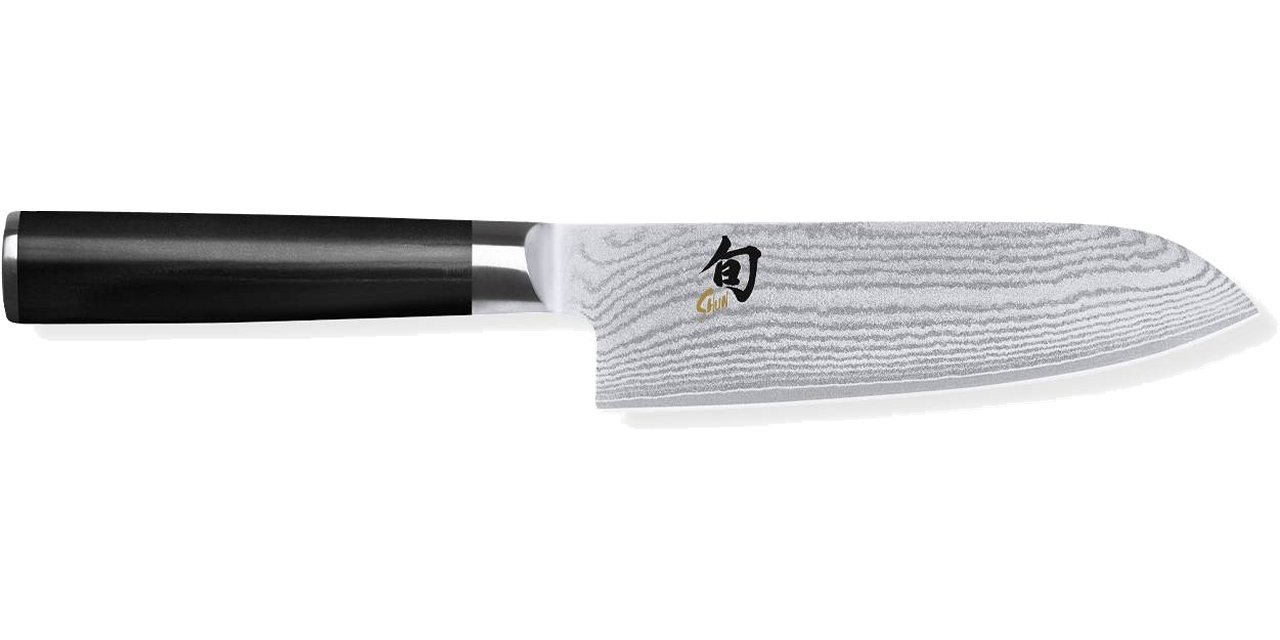 La sua lama, dall’affilatura simmetrica, infatti è più corta rispetto a quella del santoku classico e questo può essere un vantaggio perché risulta più pratico e leggero durante la fase di taglio. I 32 strati di damasco ricoprono il nucleo in acciaio VG-MAX (con durezza di 61 HRC) rendendo il coltello particolarmente resistente anche ad un uso intensivo.