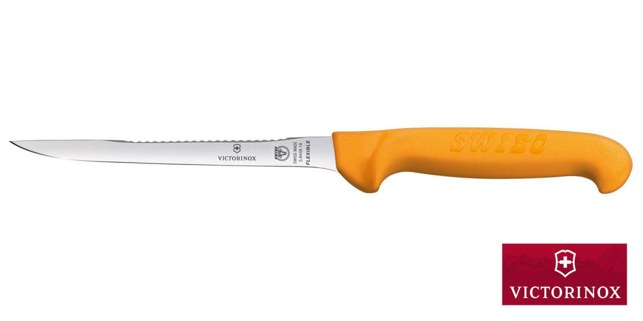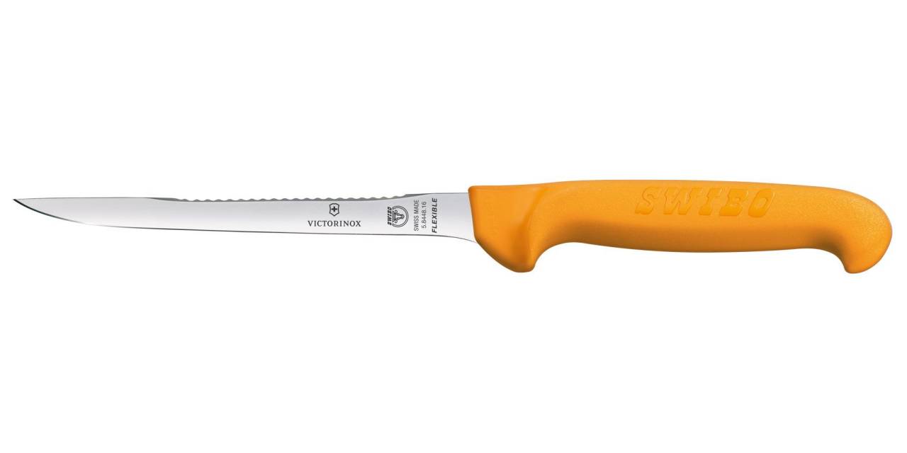 Nello specifico questo coltello presenta una lama flessibile da 16 cm in acciaio inox perfetta per filettare il pesce di piccole o medie dimensioni, mentre sul dorso ha una seghettatura adatta per squamare il pesce o tagliare lische particolarmente dure senza sollecitare la lama rischiando di rovinarla.