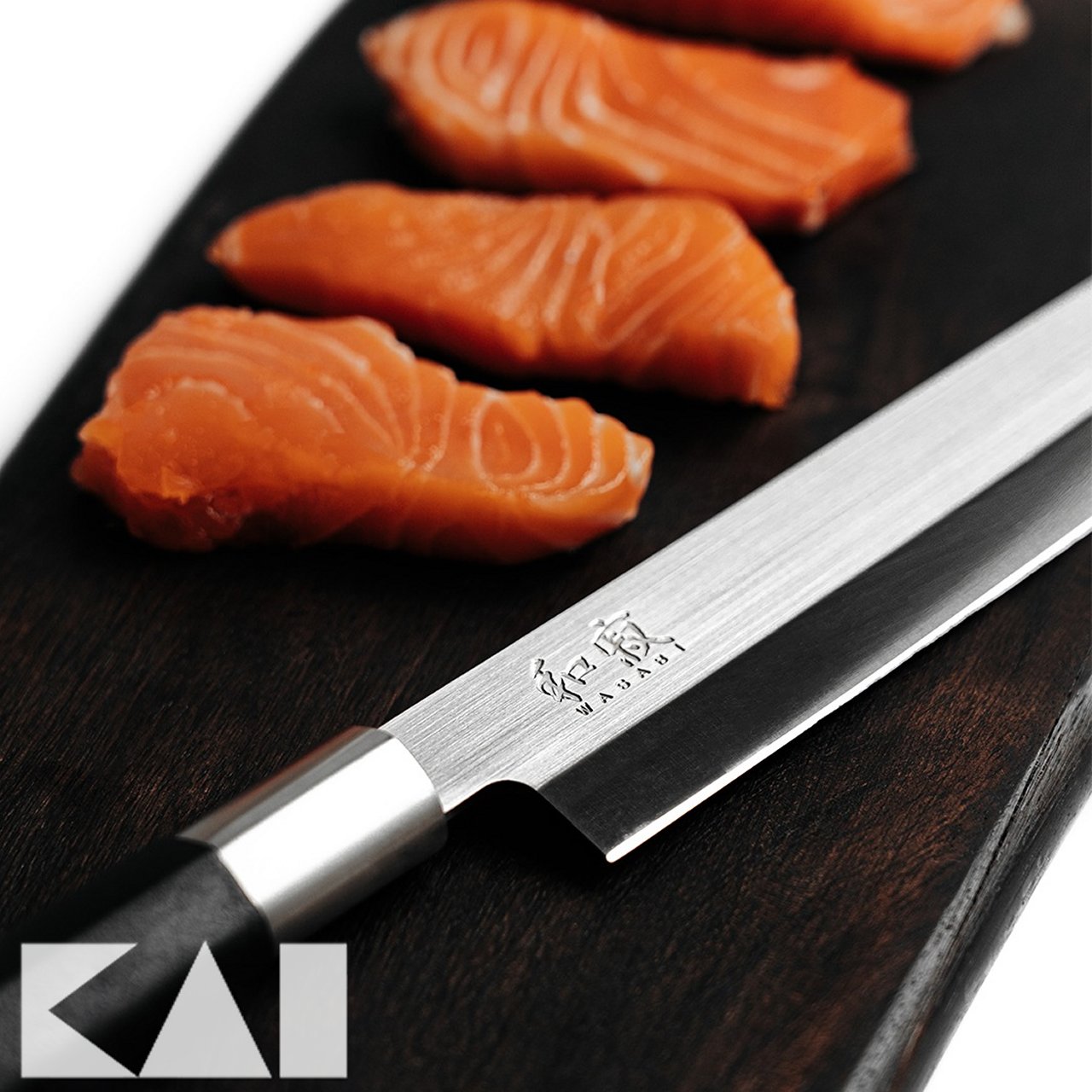 Yanagiba dal giapponese significa lama “a forma di salice” ed è proprio questo che contraddistingue questa tipologia di coltello ovvero una lama asimmetrica, allungata e stretta. Ma la forma del coltello non basta per ottenere tagli eccellenti, è necessario utilizzare strumenti di qualità per questo Kai utilizza, in questa serie, acciaio 6A/IK6 resistente alla ruggine con affilatura di lunga durata.