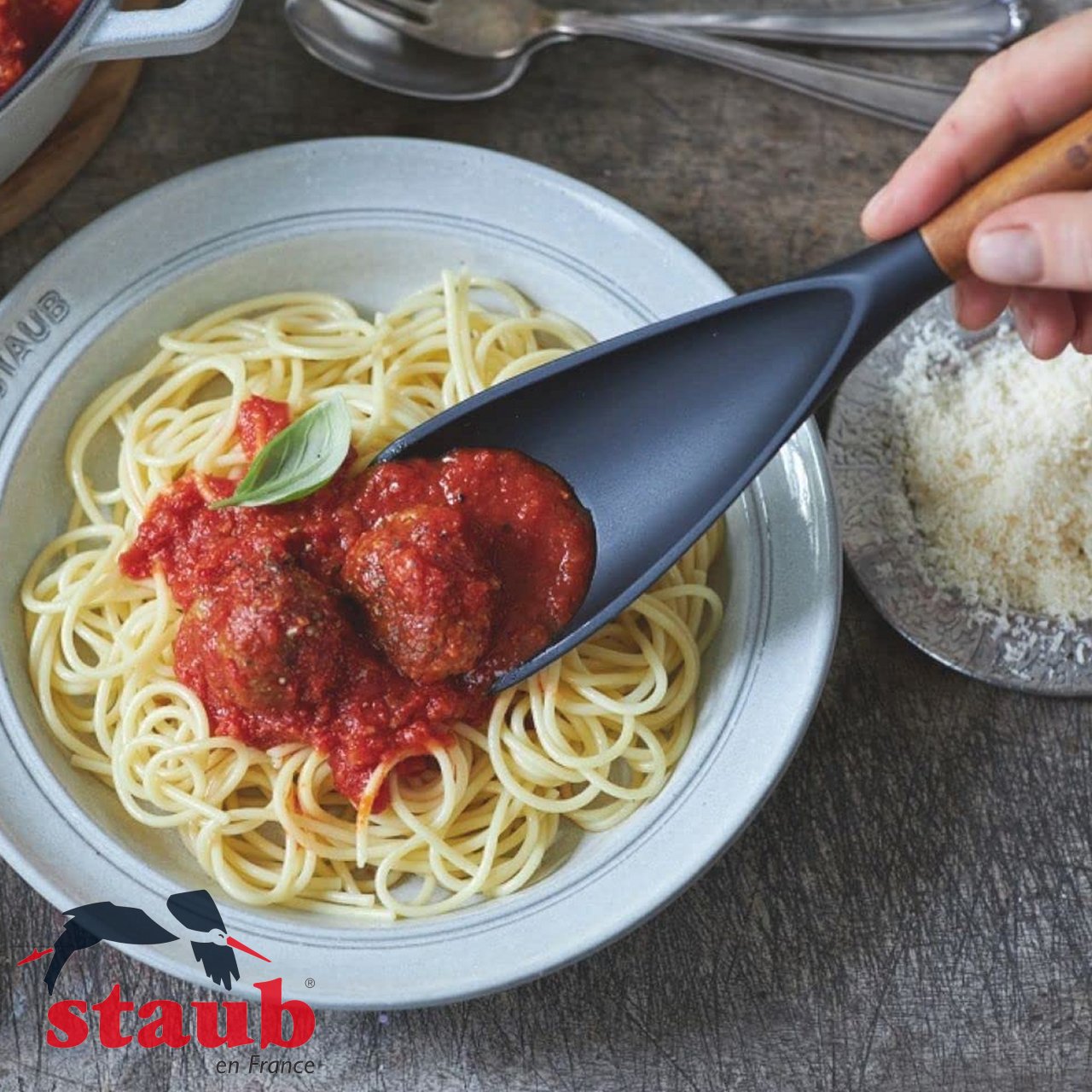 Uutensile indispensabile per la cucina quotidiana, progettato per mescolare, servire e porzionare con precisione e comfort. Firmato Staub, marchio sinonimo di eccellenza e qualità professionale, questo accessorio unisce funzionalità, resistenza e design elegante.