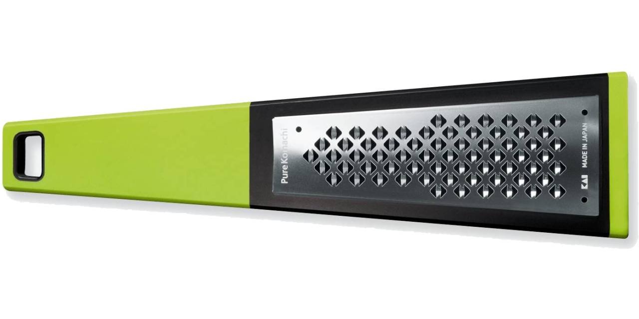 Questa grattugia a doppia lama è dotata di una lama modello Kanokoshibori che in giapponese significa “con macchie bianche” ed è perfetta per formaggi sia a pasta dura che molle, zucchine, cioccolata, carote e noci di cocco.