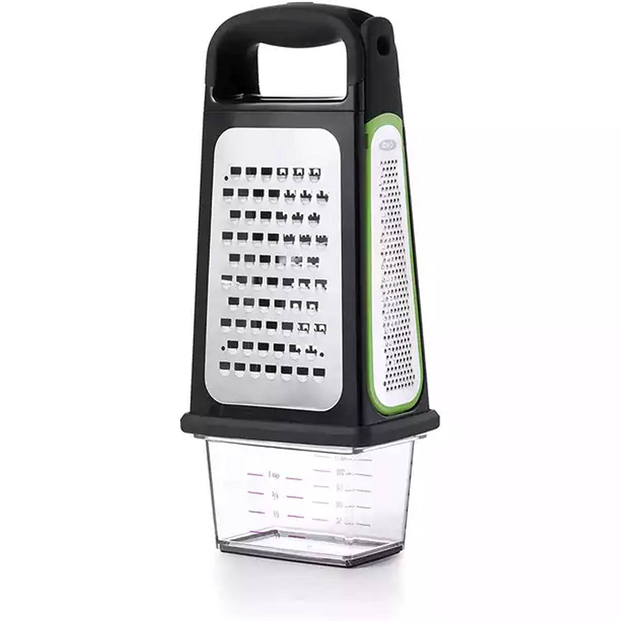 Dotata di quattro lati con diverse tipologie di grana (fine, media, grossa), una mandolina e una grattugia per scorze removibile e utilizzabile separatamente.