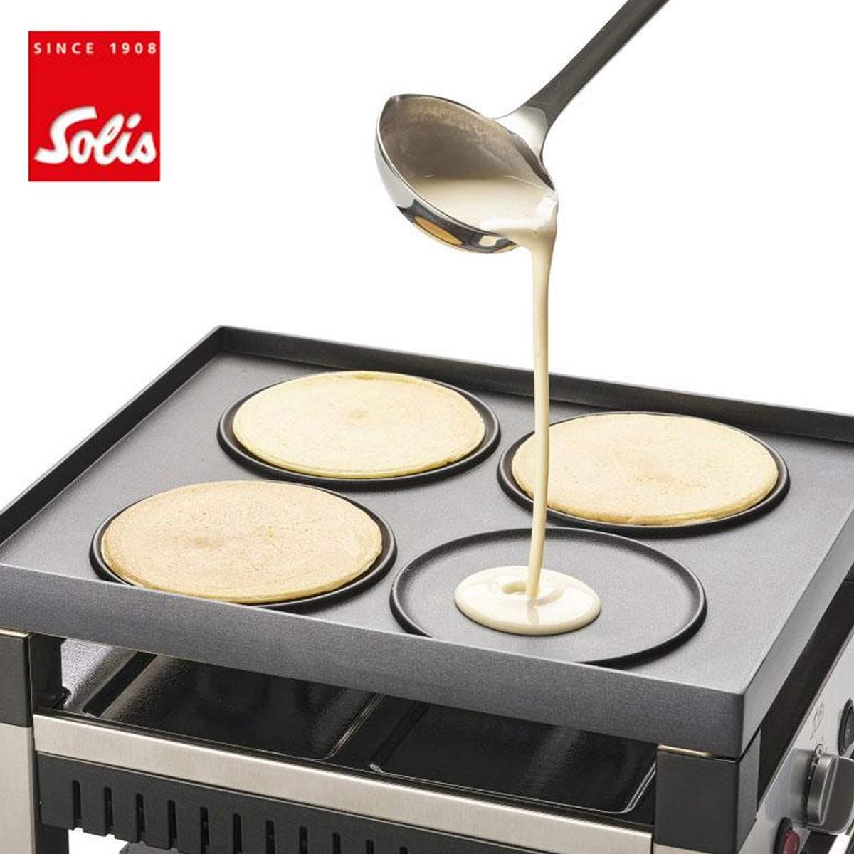 La Griglia Solis 5 in 1 Table Grill 7910 è una griglia elettrica da tavolo multifunzione di alta qualità pensata per vive e gustose esperienze di cucina conviviale. Questo grill elettrico 5 in 1 combina in un unico dispositivo le funzioni di griglia, raclette, mini-wok, cottura di crêpes e mini-pizza, permettendo di cucinare in modo creativo e versatile per fino a 4 persone.