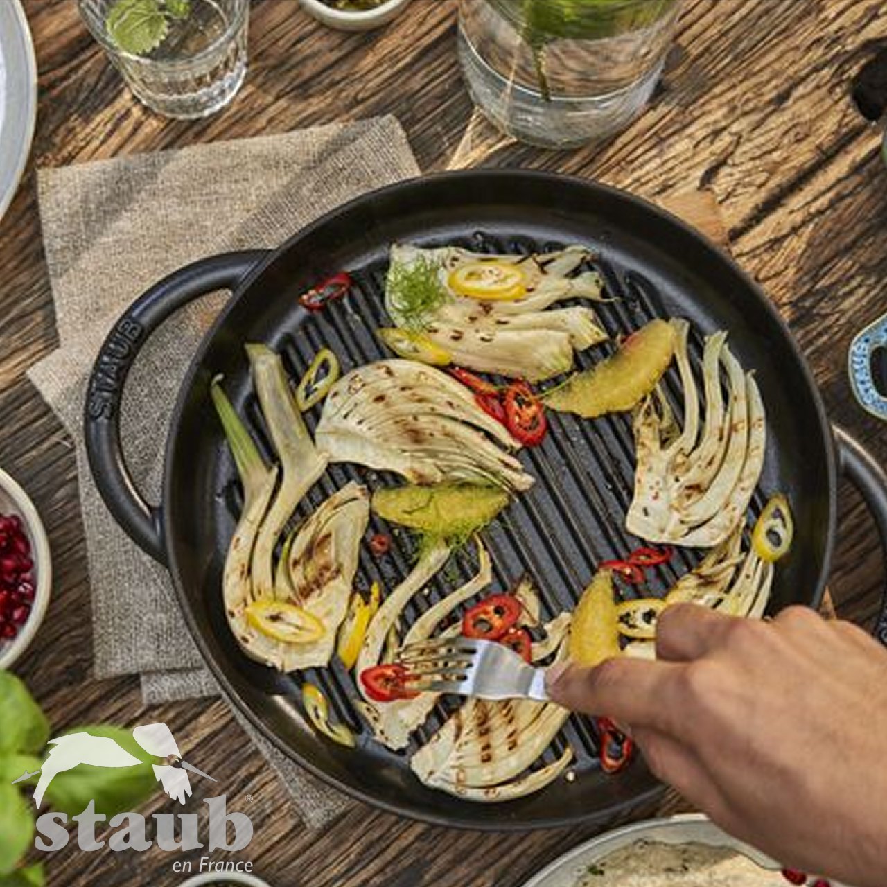 Griglia Tonda in Ghisa Nera Staub – Rosolatura Perfetta, Gusto Intenso, Effetto Barbecue