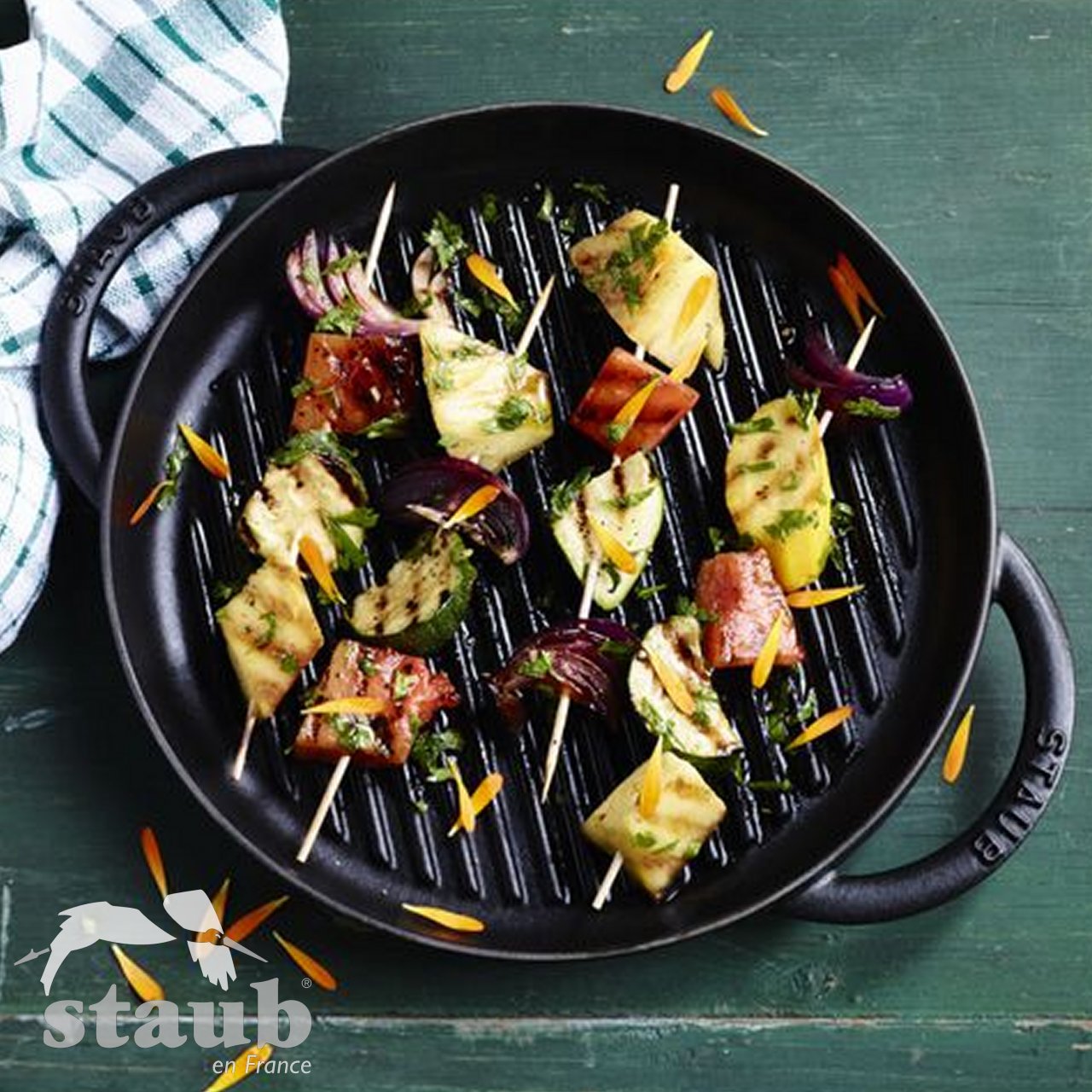 La griglia tonda in ghisa nera Staub è l’alleato perfetto per ottenere sperimentare il vero gusto della griglia direttamente in cucina. Prodotta in Francia con ghisa smaltata di alta qualità , questa griglia combina la massima resa in cottura con una versatilità eccezionale per carne, pesce e verdure.