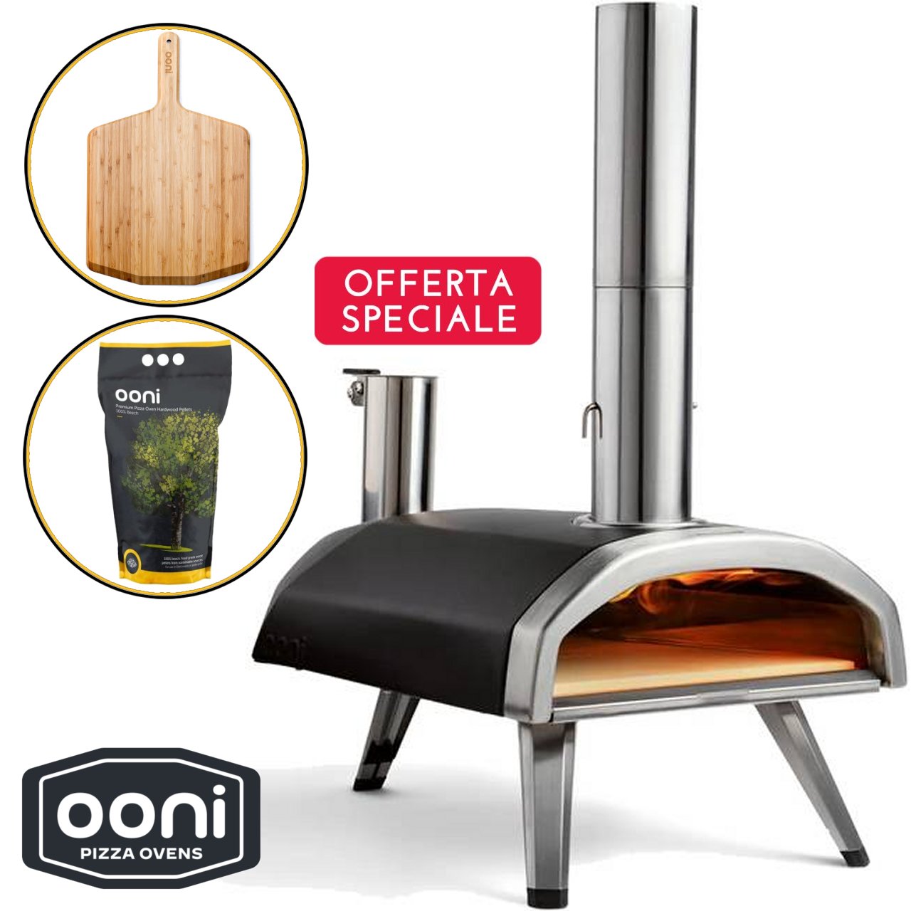 Kit forno pizza Fyra 12 Ooni + Pala in legno + Sacco Pellet 3kg