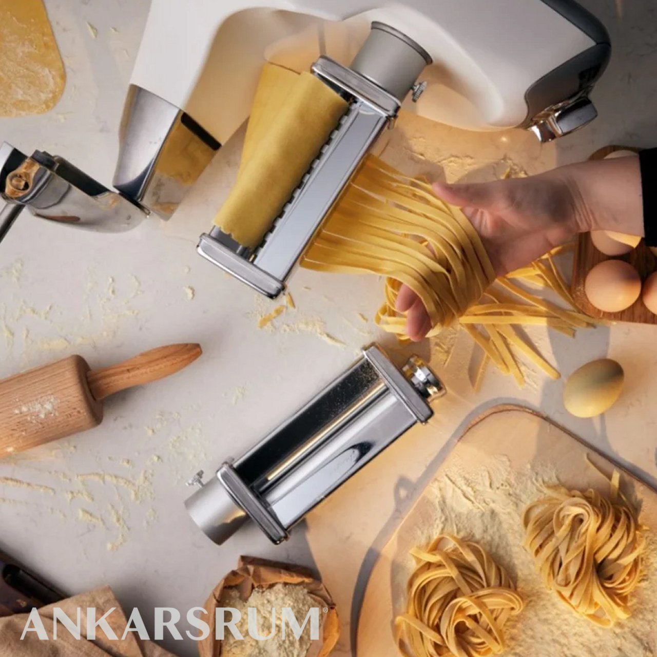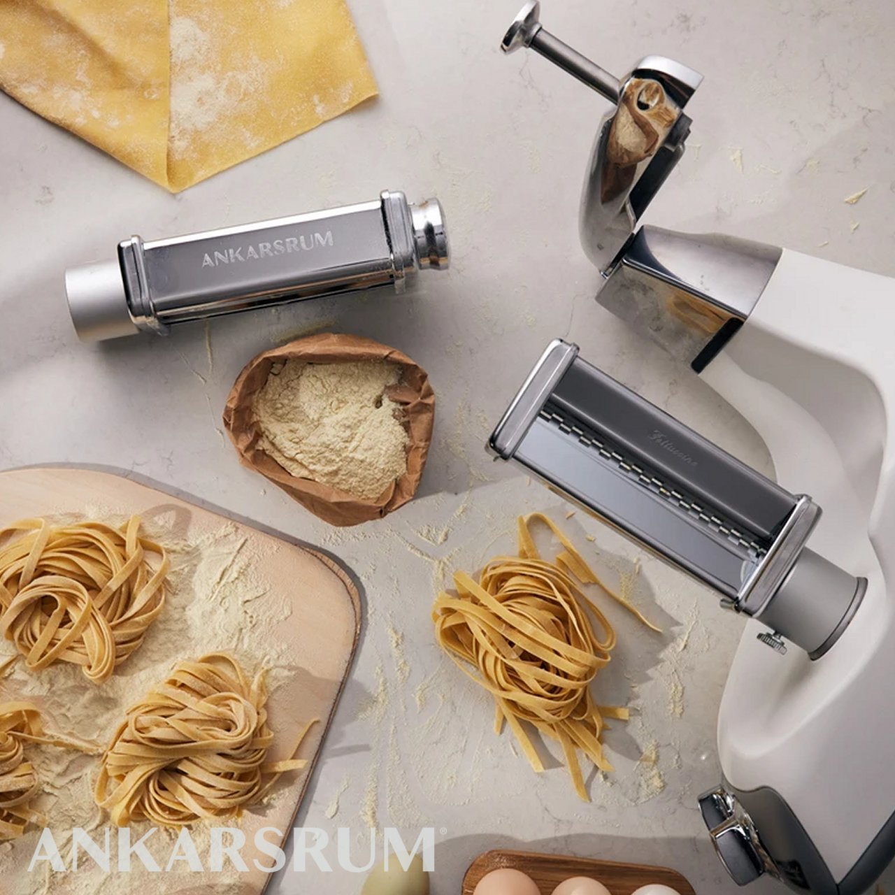 Il Kit impastatrice Ankarsrum Assistent con tirapasta e tagliapasta è la soluzione completa per chi ama la pasta fresca fatta in casa e desidera ottenere risultati professionali con la massima semplicità.