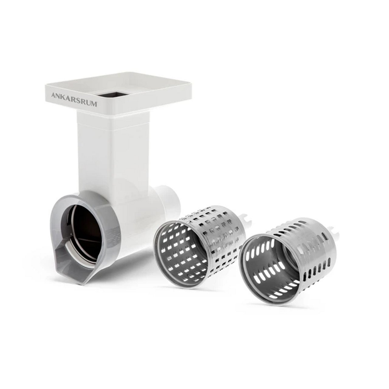 Grazie al tagliaverdure Ankarsrum, è possibile affettare, grattugiare e triturare una vasta gamma di ingredienti come verdure, formaggi, frutta e molto altro, in modo rapido e uniforme. Il kit include diversi dischi in acciaio inox, progettati per ottenere tagli precisi: dalle fette sottili alle grattugiate più grossolane, ideali per preparare insalate fresche, contorni, zuppe o ingredienti per ricette più elaborate.