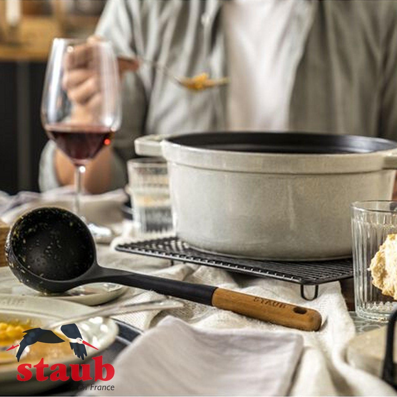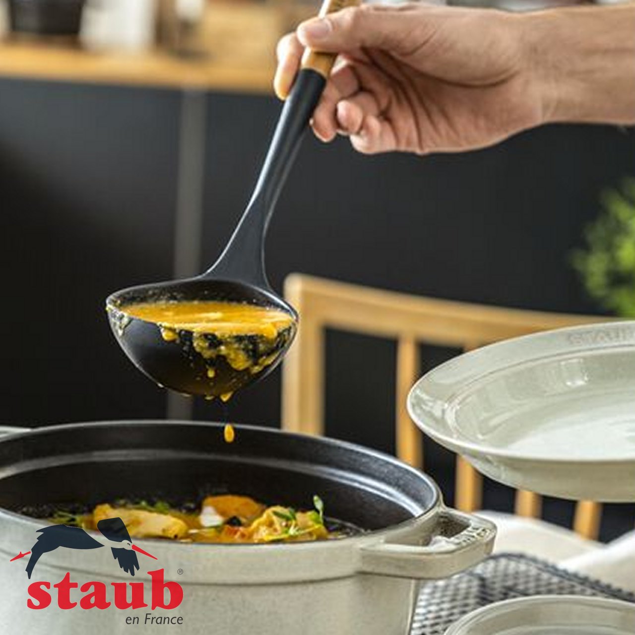 Altri prodotti di qualità firmati Staub sono i comodi e resistenti utensili in silicone indispensabili per la preparazione degli alimenti. Ogni utensile, indipendentemente dalla funzione, è caratterizzato da un manico ergonomico in legno di acacia per una perfetta presa con la mano. Tra questi accessori Staub puoi trovare: spatole, mestoli, schiumarole, pinze, pennelli e mestoli.