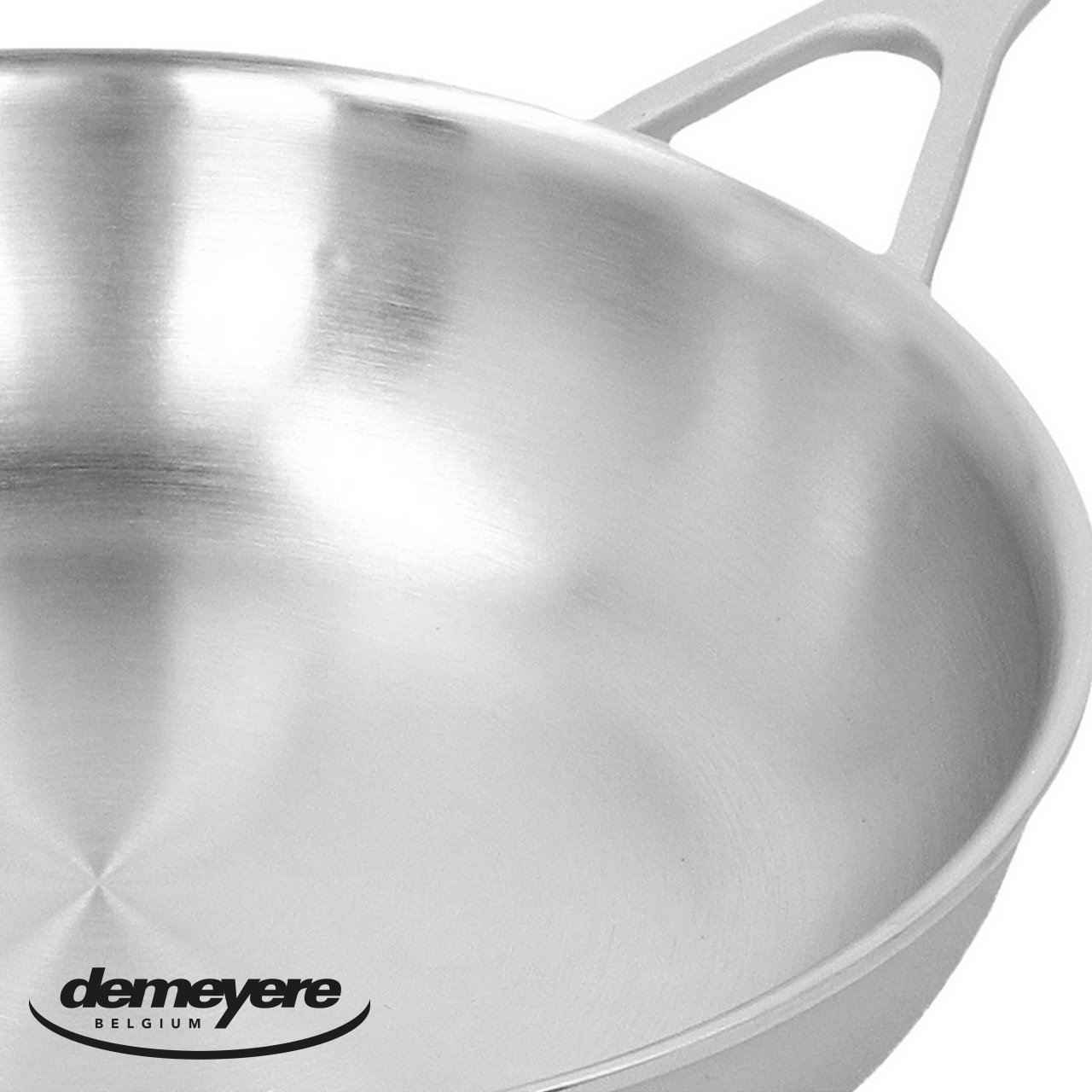I robusti manici in acciaio inox sabbiato sono saldati, non rivettati, all’esterno della padella, il che impedisce l’accumulo di residui di cibo all’interno per una pulizia impeccabile.