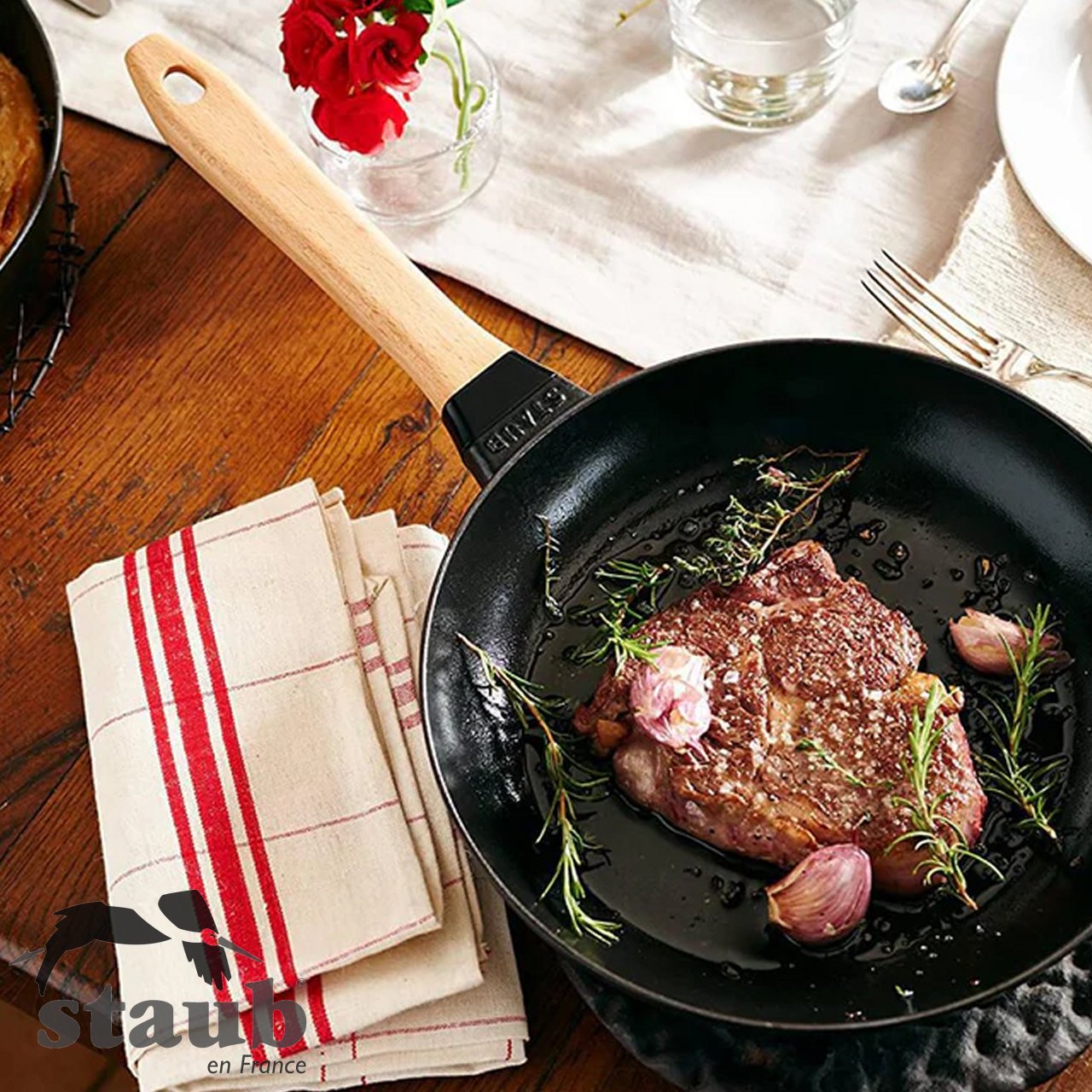 Padella Staub con Manico in Legno: Icona della Cucina Francese che unisce Design Rustico e Rosolatura Leggendaria