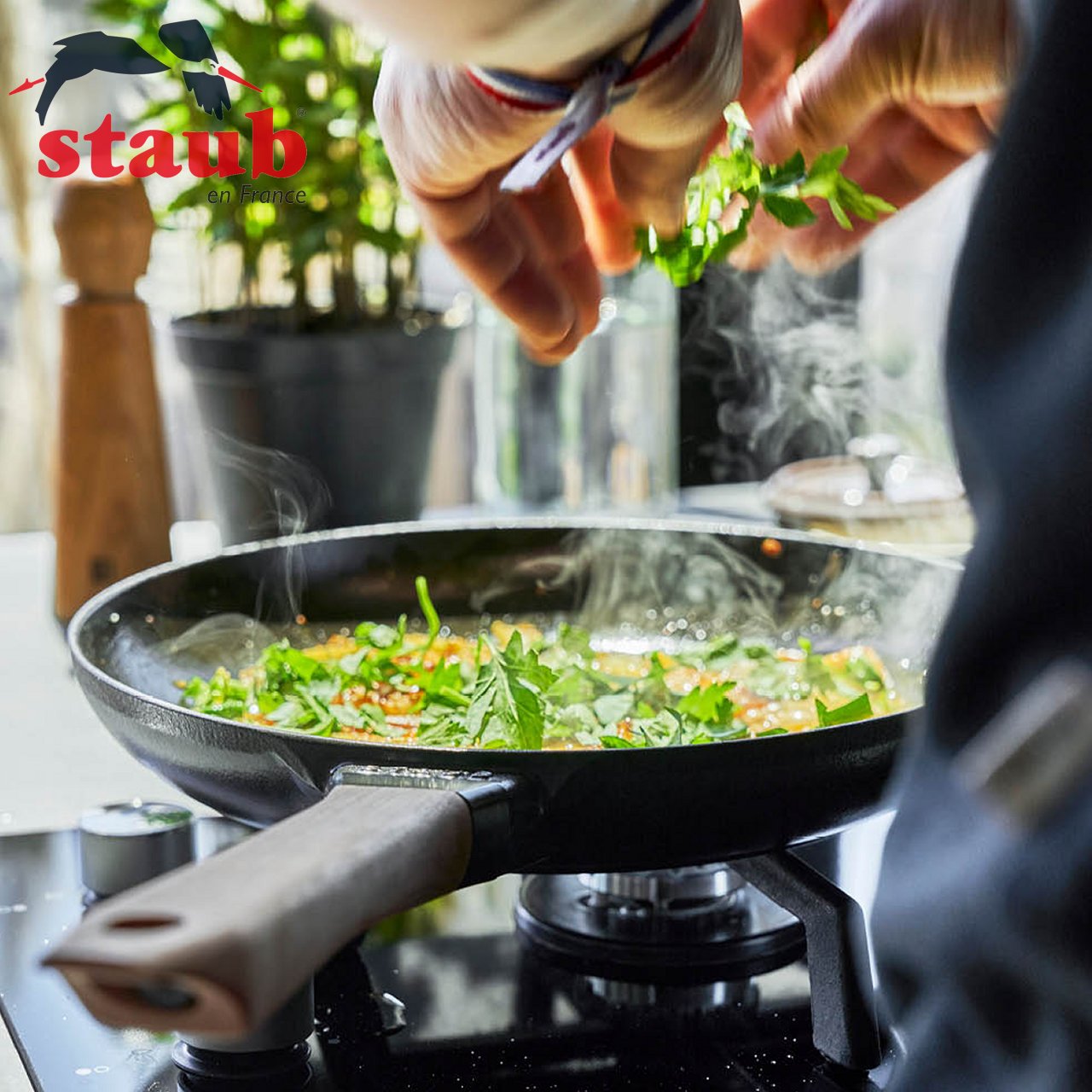 La Padella Staub in ghisa con manico in legno rappresenta la fusione perfetta tra la robustezza della tradizione culinaria francese e un design raffinato. Questo utensile รจ pensato per chi cerca prestazioni professionali, un’eccezionale distribuzione del calore e un pezzo d’arredo per la propria cucina.