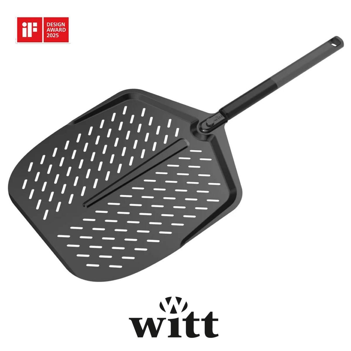 Pala per pizza forata in alluminio Witt WI1035 nera – manico grip antiscivolo professionale