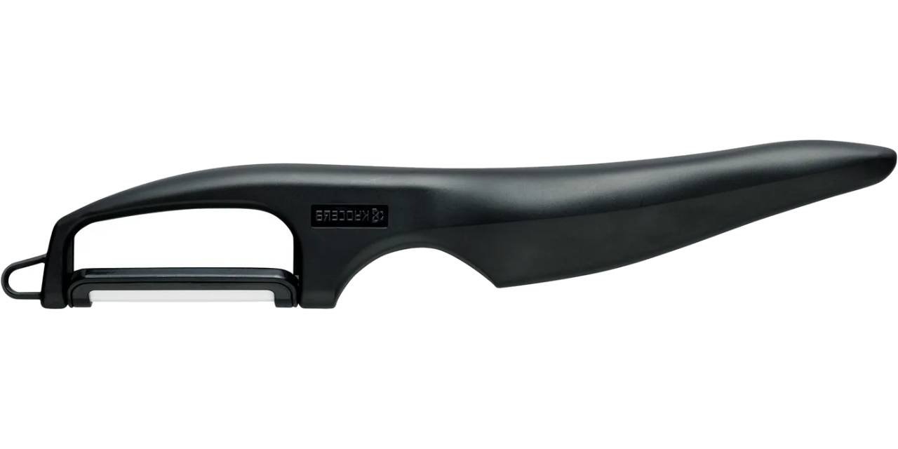 Pela ortaggi con lama a doppio filo in ceramica con pratica impugnatura in materiale sintetico facile da pulire e gradevole nell’aspetto total black.