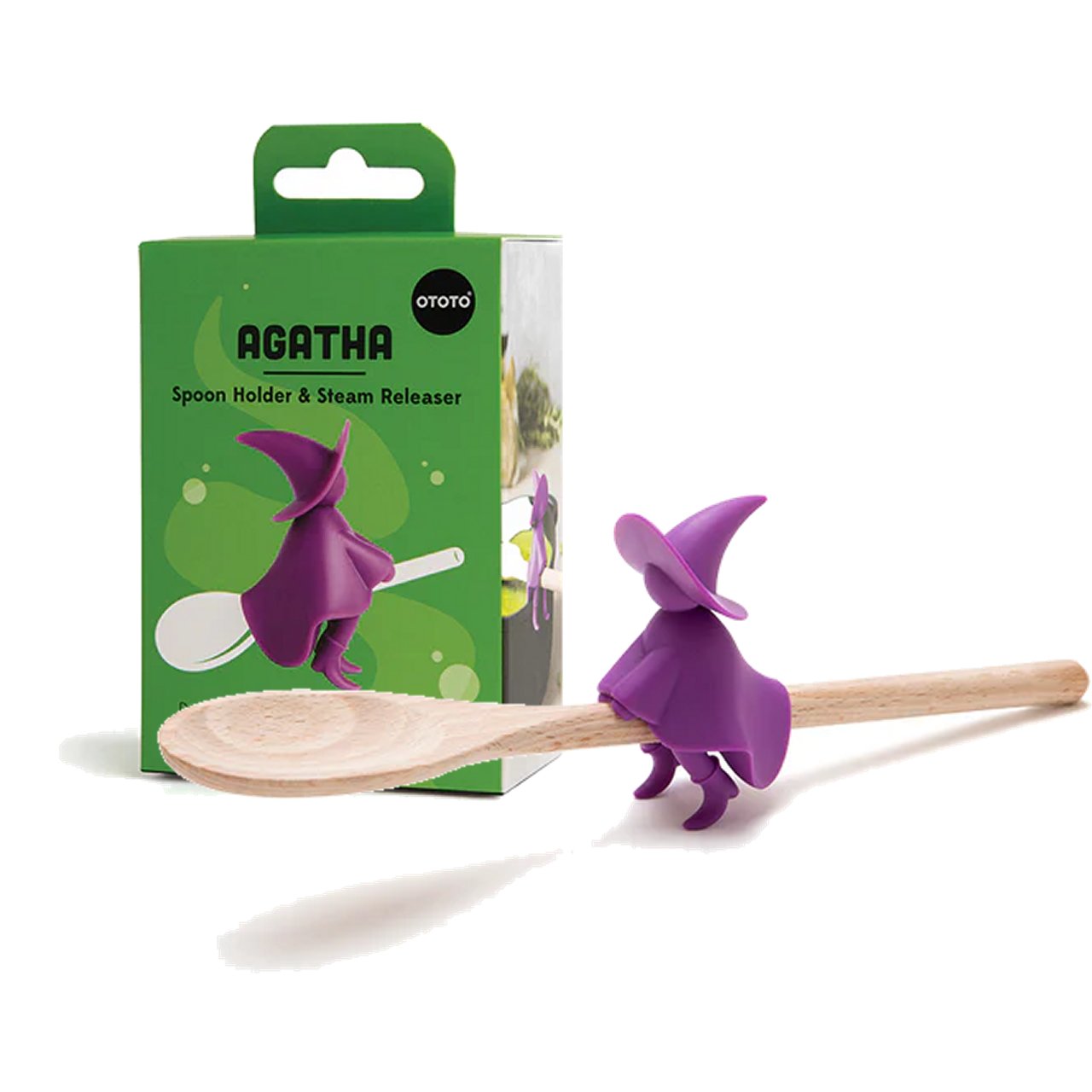 Aghata la streghetta tutto fare è un'assistente straordinaria per la preparazione dei piatti, si trasformerà da porta mestolo a dispositivo per rilascio del vapore.