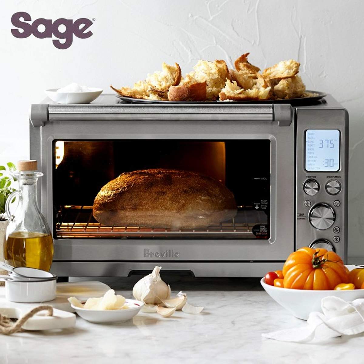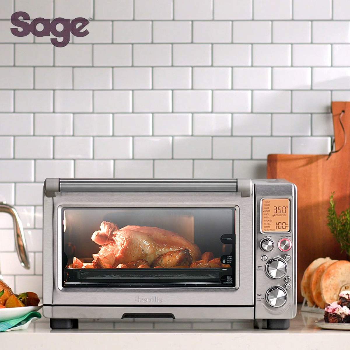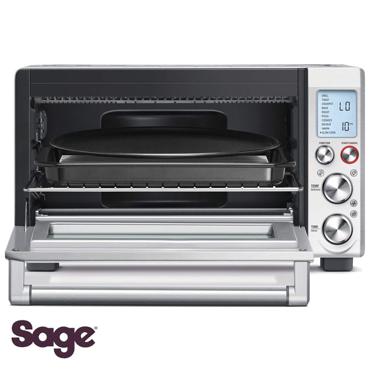 Con questo forno a convezione di Sage potrai far lavorare la fantasia e cuocere qualsiasi pietanza, dal pane alla pizza, dai dolci agli arrosti, utilizzando le 10 funzioni di cottura preimpostate.