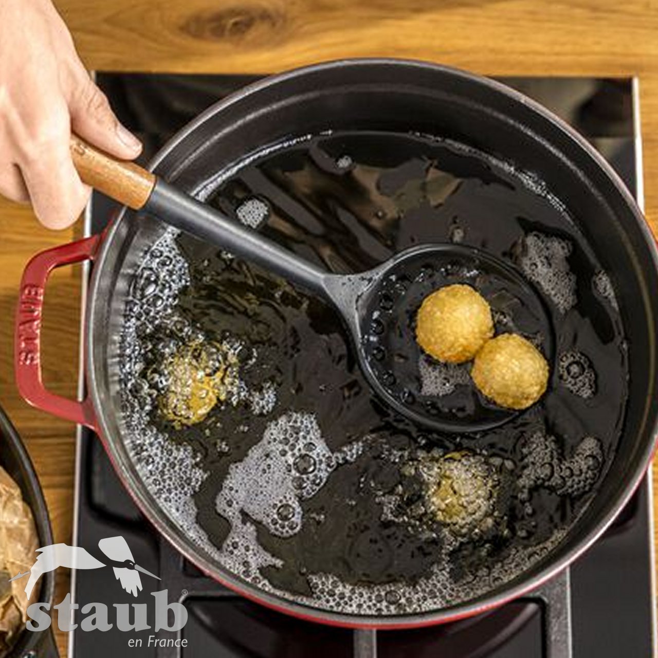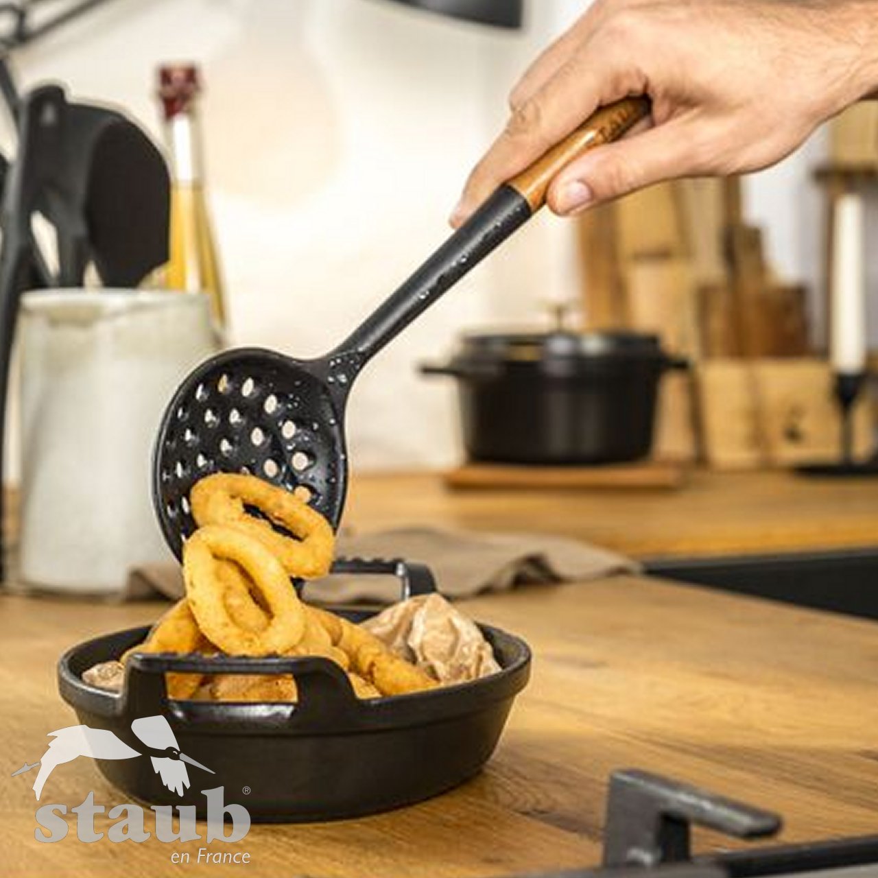 Altri prodotti di qualità firmati Staub sono i comodi e resistenti utensili in silicone indispensabili per la preparazione degli alimenti. Ogni utensile, indipendentemente dalla funzione, è caratterizzato da un manico ergonomico in legno di acacia per una perfetta presa con la mano. Tra questi accessori Staub puoi trovare: spatole, mestoli, schiumarole, pinze, pennelli e mestoli.