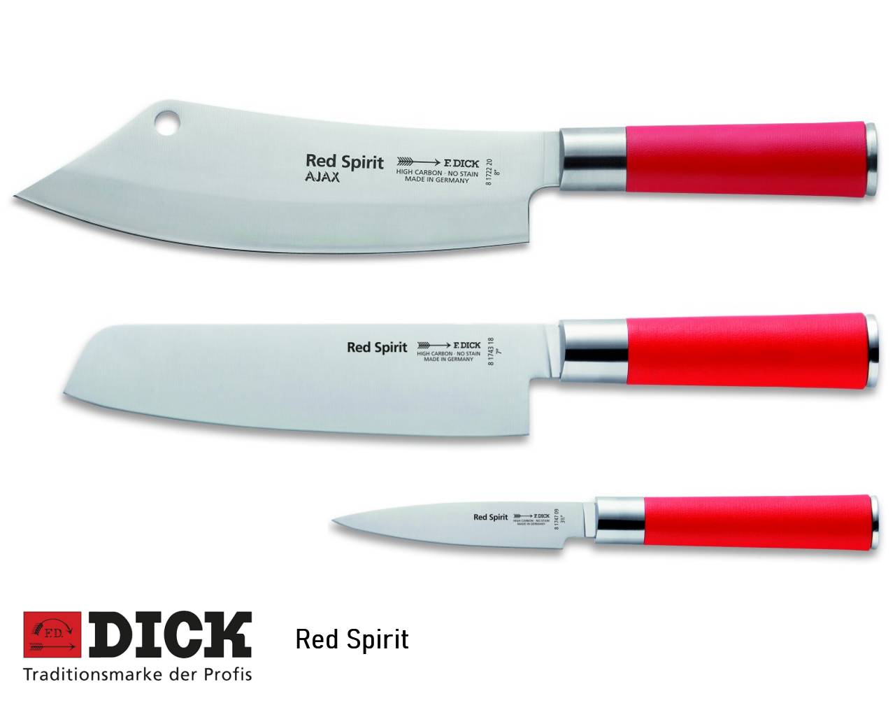 Set composto da 3 coltelli Dick Red Spirit di qualità tedesca ma di ispirazione giapponese con i quali potrai trattare ogni tipo di alimento.