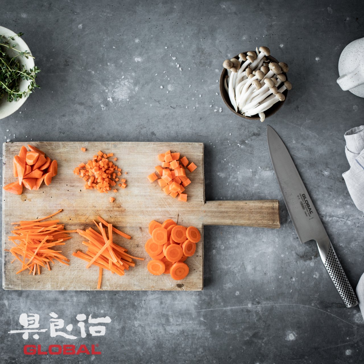 I coltelli Global della serie GS sono invece composti da strumenti di piccole e medie dimensioni dotati di un’impugnatura triangolare, ideata per chi non ha mani molto grandi.