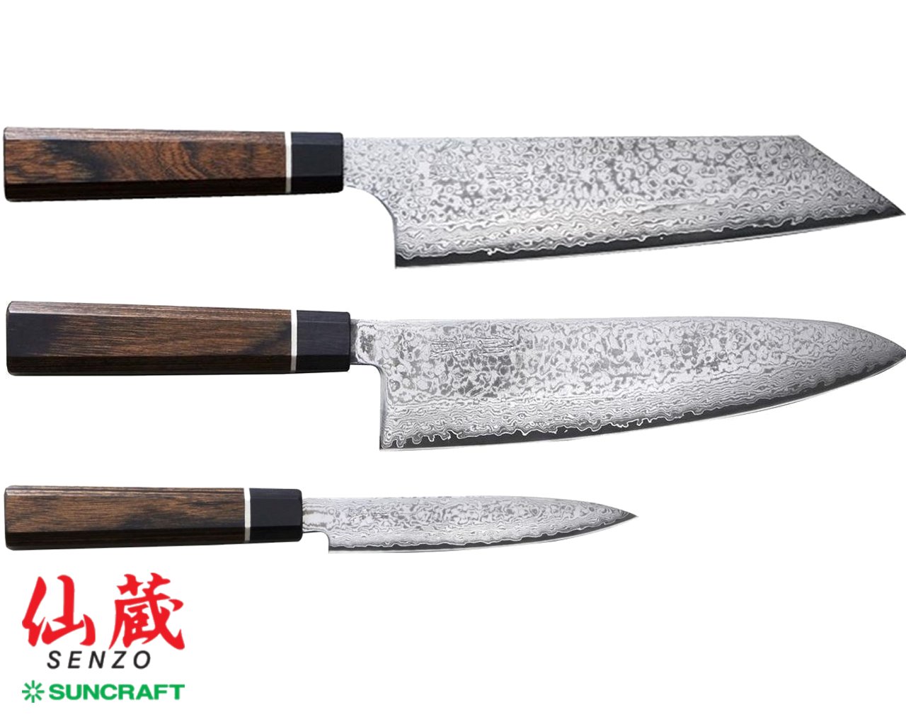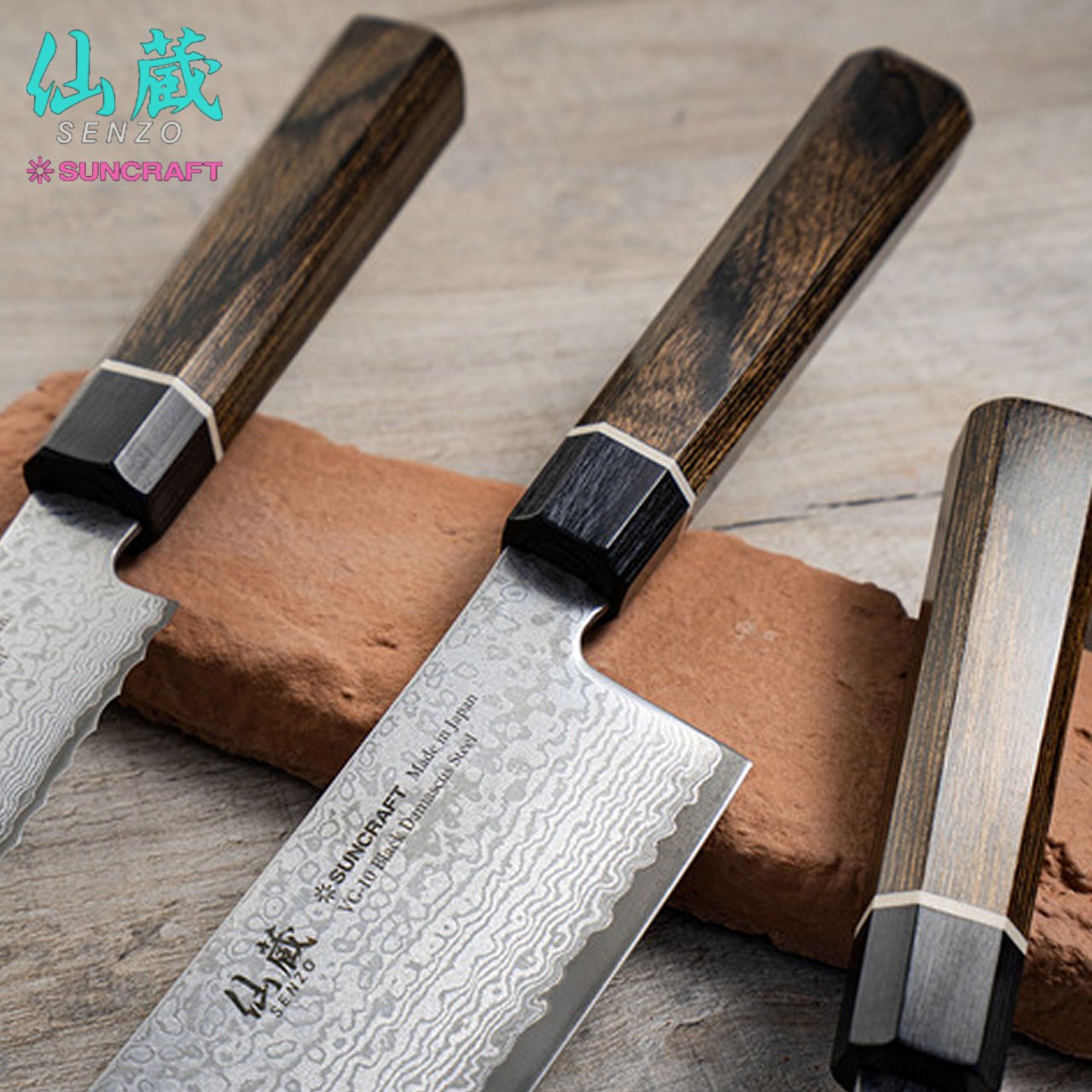 Il set Suncraft Senzo Black รจ un pacchetto di coltelli giapponesi professionali che offre una soluzione completa per ogni esigenza culinaria, unendo la versatilitร del coltello da chef e del coltello multiuso alla precisione specialistica del bunka.