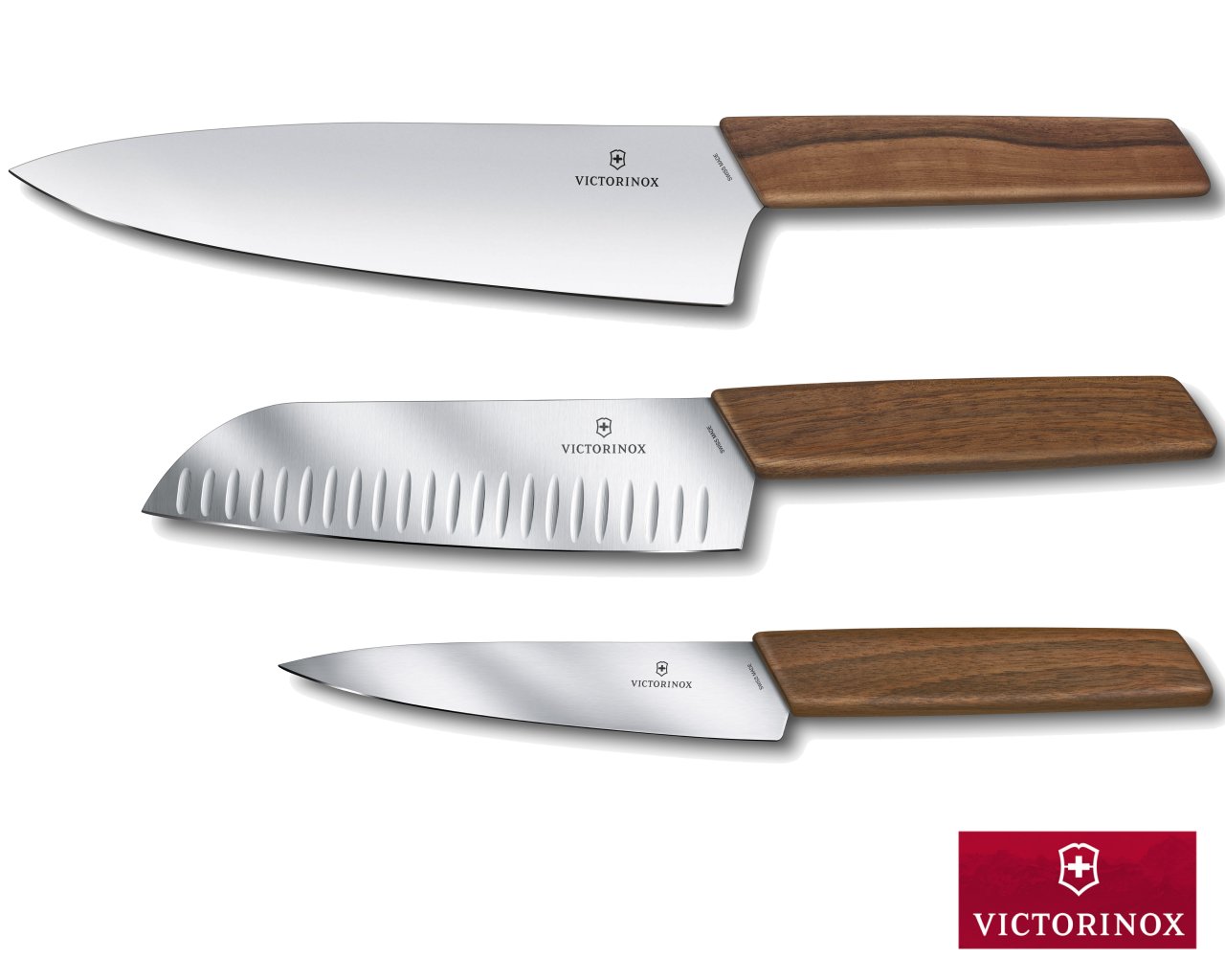 • Swiss Modern Wood: è una linea di coltelli da cucina che rispetta tutti i canoni dei coltelli Victorinox Swiss modern ma con una piccola differenza fondamentale: i fantastici ed eleganti manici in legno;