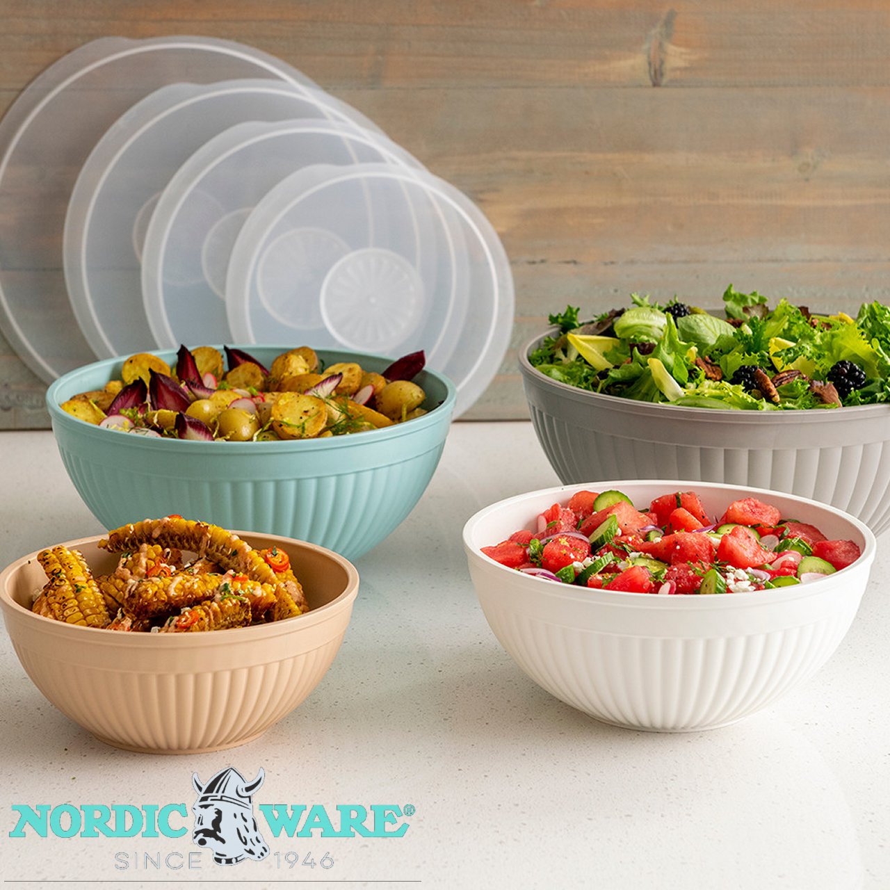 Set composto da quattro ciotole con coperchi, realizzate in melamina, un materiale BPA free, con differenti colori perfette per servire in tavola i tuoi alimenti o semplicemente per conservarli.
