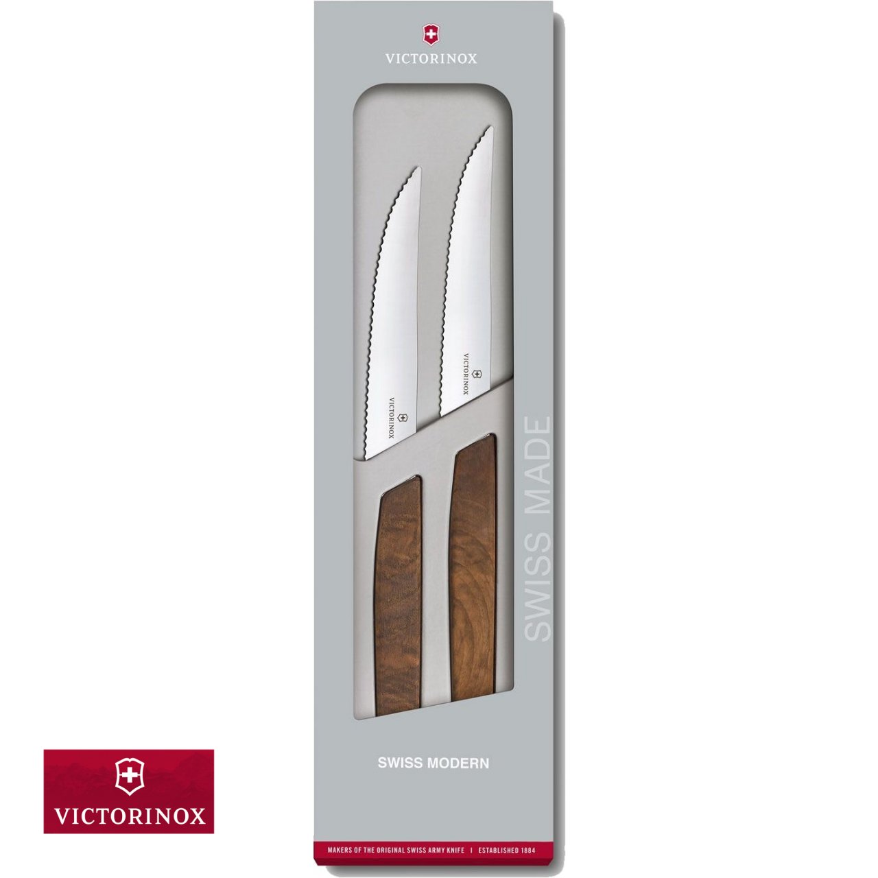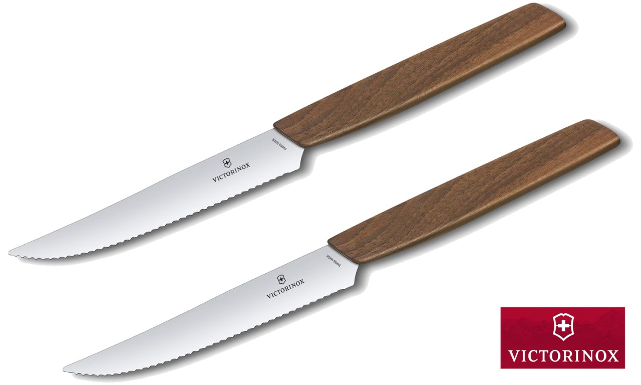 • Swiss Modern Wood: è una linea di coltelli da cucina che rispetta tutti i canoni dei coltelli Victorinox Swiss modern ma con una piccola differenza fondamentale: i fantastici ed eleganti manici in legno;