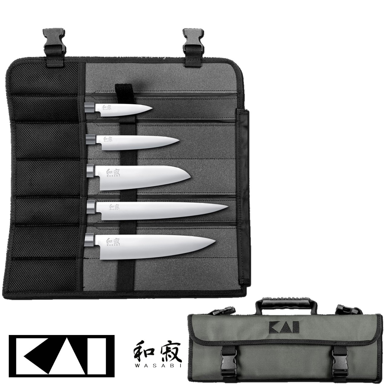Set composto da 5 coltelli da cucina Kai Wasabi completo di borsa portacoltelli, un kit con diverse tipologie di lame per lavorare ogni tipo di ingrediente.