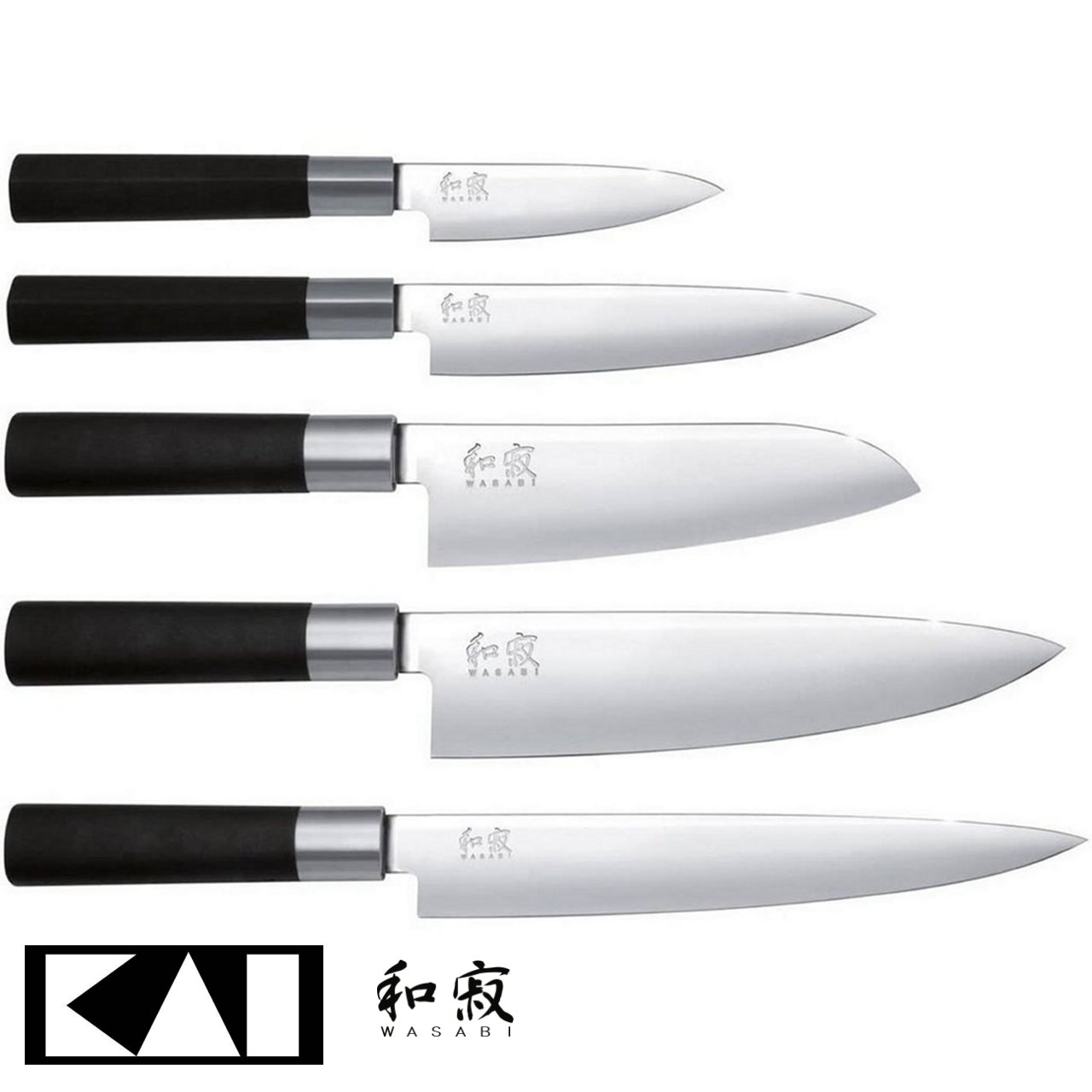 La linea Wasabi di Kai è una delle più semplici e funzionali dotate di lame in acciaio 1K6, un acciaio estremamente resistente alla corrosione, e manico in polvere di bambù, leggero ed igienico.