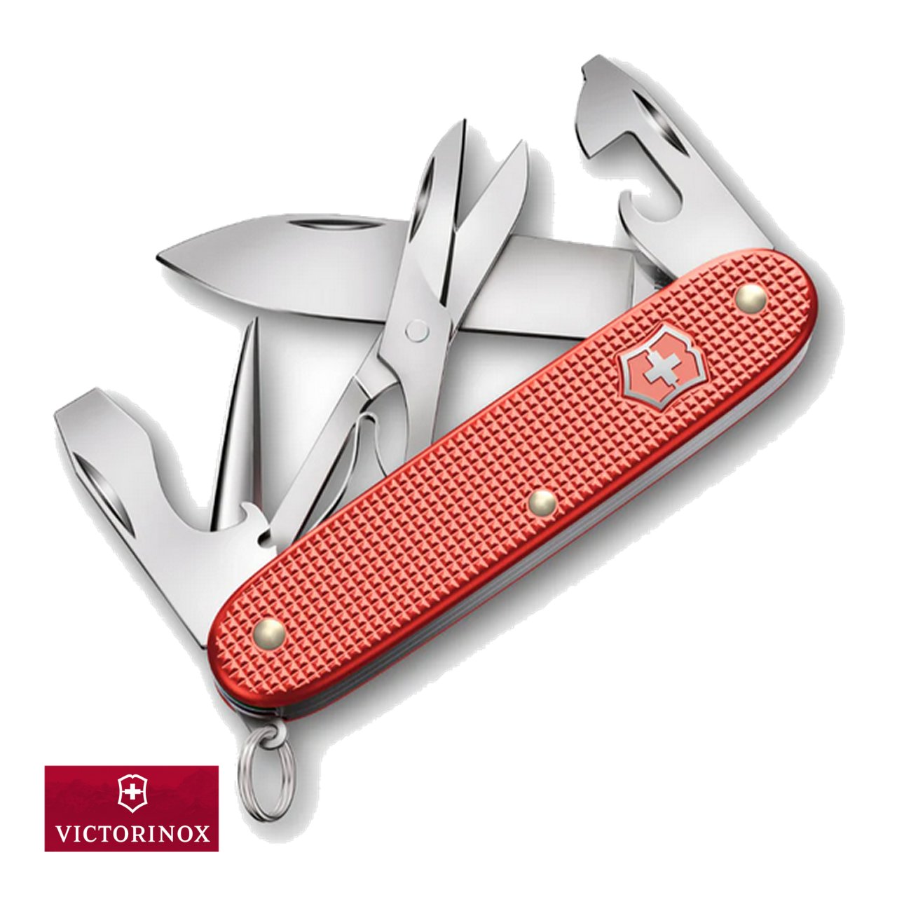 – Victorinox Alox Pioneer X con 9 funzioni: Lama grande / Forbici / Cacciavite 3 mm / Cacciavite 7 mm / Apriscatole / Apribottiglie / Spelafili / Alesatore, punteruolo / Anello portachiavi