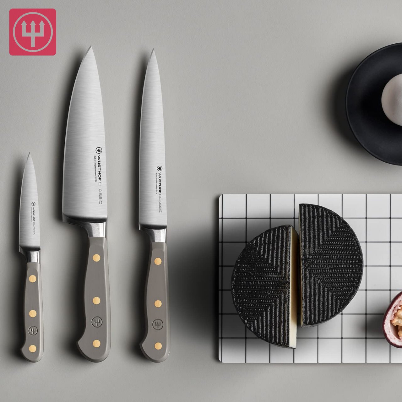 • Coltelli WÜSTHOF Classic: è la linea di coltelli da cucina più iconica del marchio WÜSTHOF. La gamma si distingue per il design e la qualità, nonché per l’incredibile numero di pezzi disponibili: sono ben 91 modelli a disposizione tra coltelli da chef, spelucchini, universali, santoku e molto altro ancora. In breve, si tratta di un modello di coltello da cucina must have, soprattutto per l'altissima durevolezza e dallo stile originale e senza tempo;