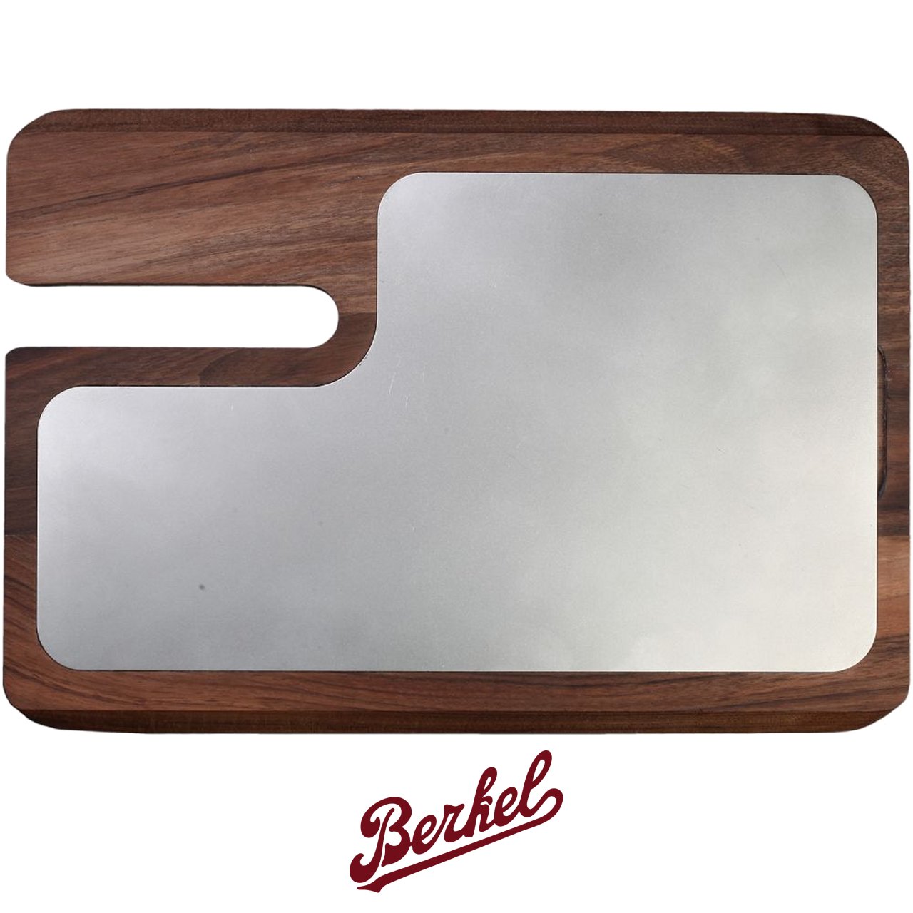 Questo tagliere realizzato in frassino con piastra in acciaio inox, è studiato per le affettatrici elettriche Berkel, così le fette scivolano dalla lama e poggiano direttamente sul tagliere.